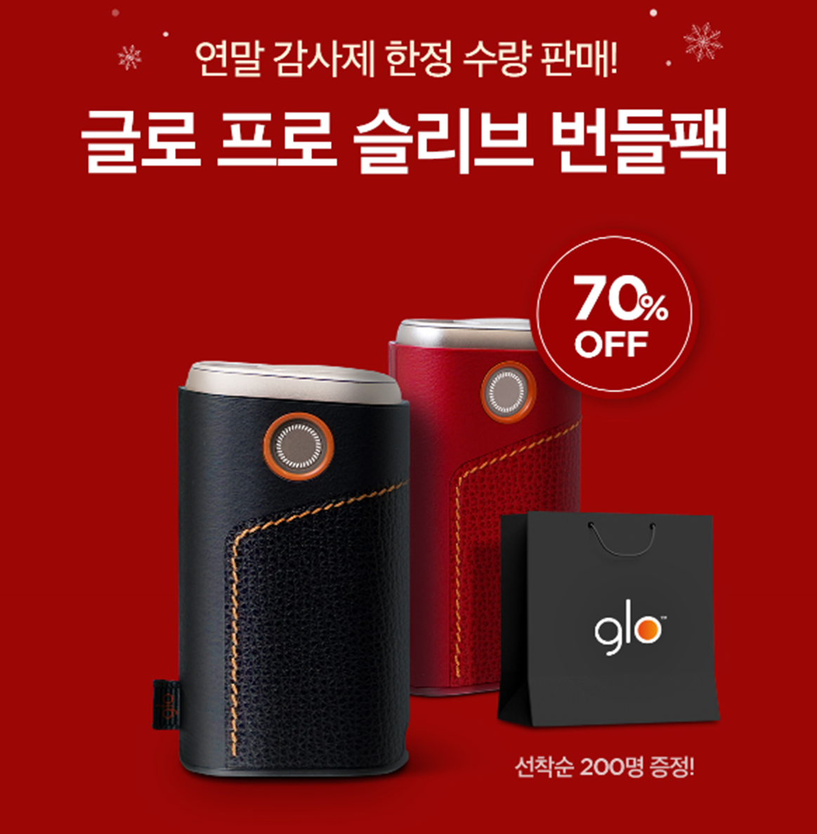 2020년 고마운 분들께 감사한 마음을 전하거나, 기존에 사용 중이던 전자담배 디바이스를 교체하려고 고민 중인분들이라면 이번 글로 프로 슬리브 번들팩 행사만큼 딱 좋은 이벤트가 또 있을까 싶습니다. 최대 90% 할인까지 받을 수 있는 이번 이벤트! 원하는 색상이 품절될 수도 있으니 서둘러 구입해보시고 주어지는 모든 혜택을 챙겨보시기 바랍니다.