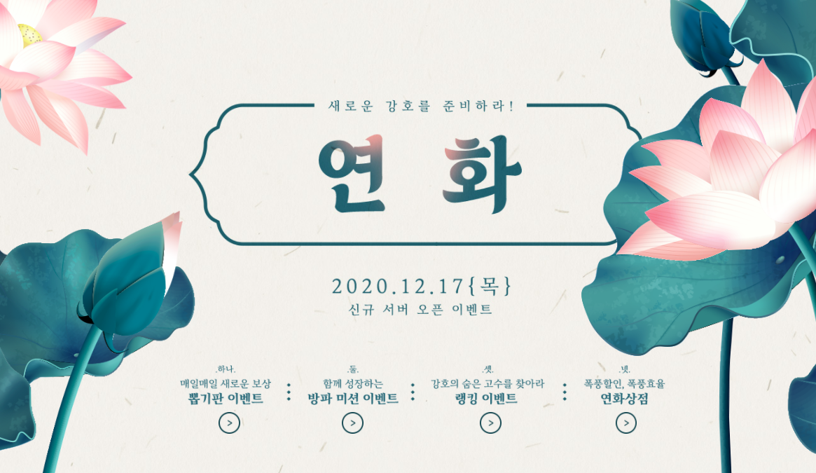 새로운 강호, 연화 서버 오픈 이벤트! 연화 서버 오픈 기념 다양한 이벤트와 보상을 누려보세요!