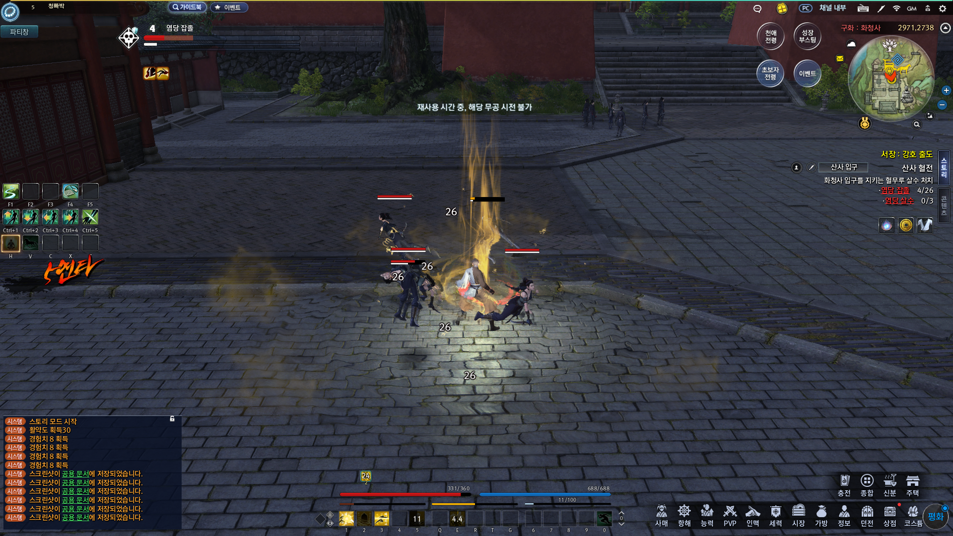 소림 문파의 가장 큰 특징이라면 빠른 공격 속도라고 할 수 있는데요, 순간 상대에게 주는 강한 대미지와 다양한 체술을 이용해 누구보다 빠른 사냥이 가능하다는 점입니다. 또한 전방을 향해 광역 피해를 주는 것은 물론이고, 공격 스킬과 일념 스킬을 사용해 전투시에도 체력을 보충할 수 있다는 점은 초보자도 누구나 쉽게 플레이 할 수 있는 장점 중 하나였습니다.