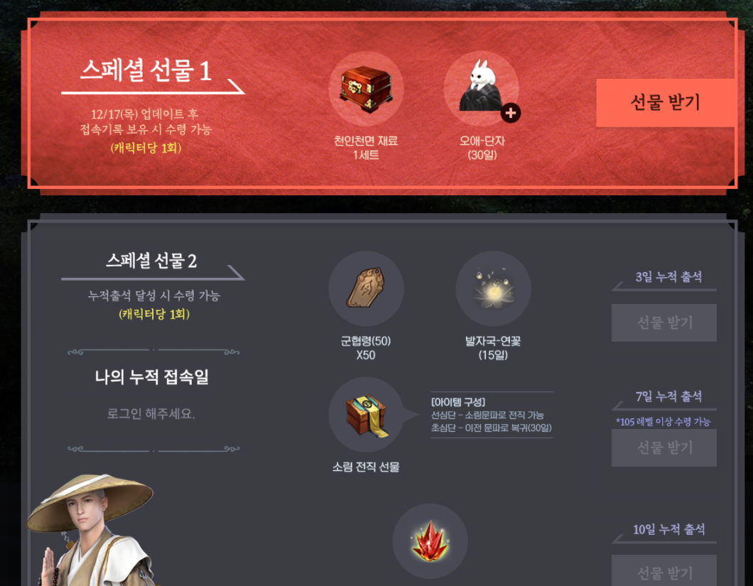 열 번째 문파의 빛나는 등장! 소림의 등장과 함께 반짝이는 선물들 받아가세요~!