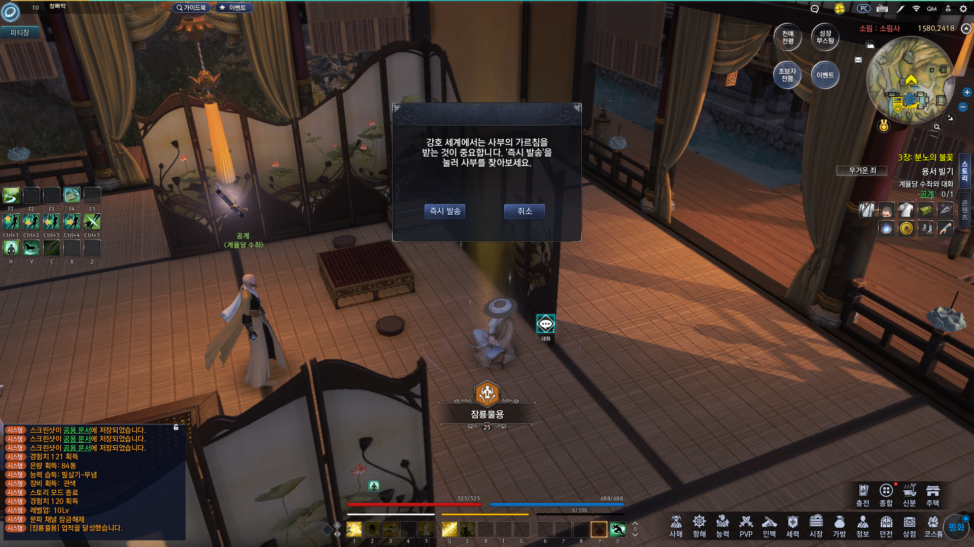 10레벨을 달성하고 분노의 불꽃 스토리 콘텐츠를 진행하면 점핑 메세지와 함께 수련치와 경험치 그리고 다양한 보상까지 획득 가능한 메세지를 확인할 수 있습니다. 이와 동시에 계속되는 메세지는 절로 다음이 기대된다고 할까요? 스토리 콘텐츠 역시 53장까지 빠르게 건너뛰면서 본격적인 스토리를 즐길 수 있어 흥미진진합니다.