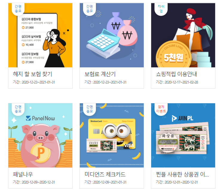 그 밖에 컬쳐랜드 웹페이지와 모바일어플틀 통해 DB손해보험 사이트 접속 시, 증권당 컬쳐캐쉬 30만원까지 이용한 이벤트도 진행 중이고, 간편하게 응모가능한 이벤트도 다양하게 준비되어 있으니, 컬쳐랜드를 통해 보다 현명하고 똑똑한 소비생활을 즐겨보시기 바랍니다!
