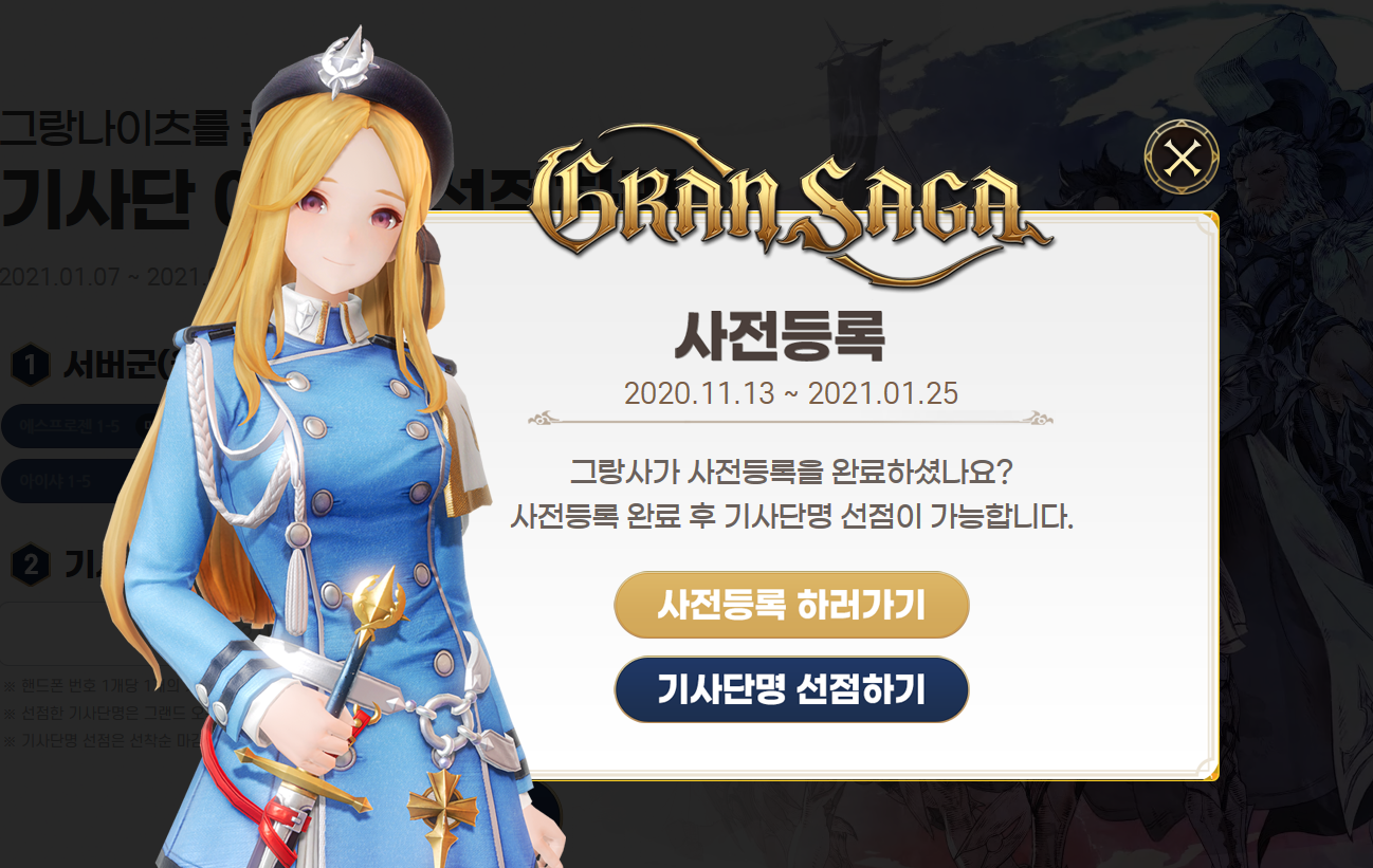 모바일MMORPG 추천 그랑사가 기사단명 선점 시작