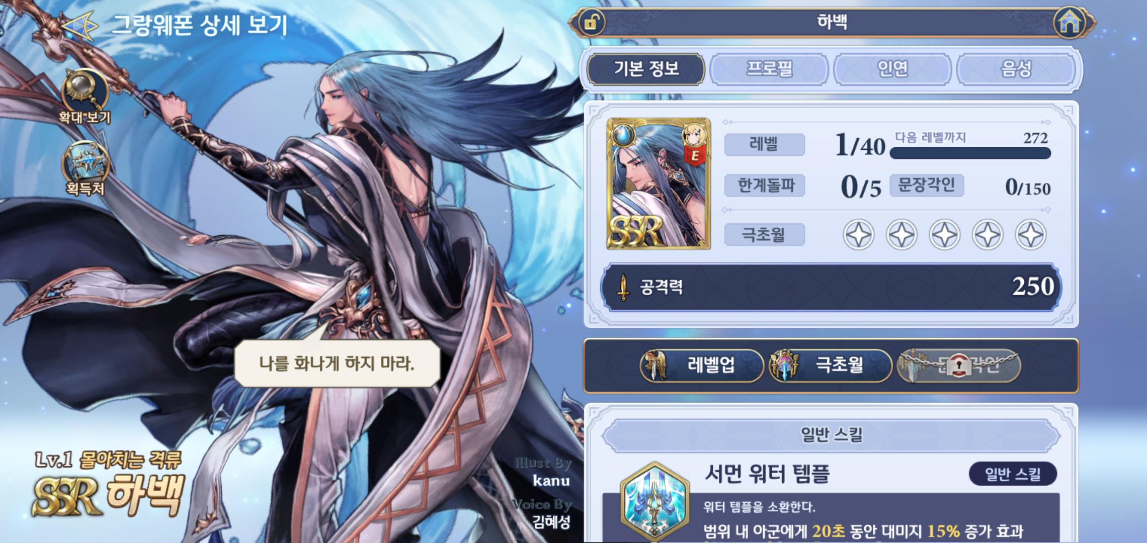 그랑웨폰과 아티팩트에 있어 등급표가 있을 정도로 중요한 요소 중 하나입니다. 아무래도 SSR등급이 가장 높은 효율을 보여주고 있는데요, 파티의 기본이 되는 세리아드의 경우 아이샤를 필두로 하백까지 구성한다면 기본 틀은 갖추었다고 보아도 무방합니다.
