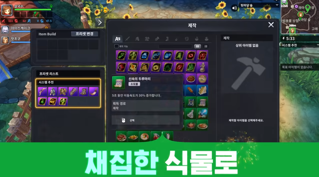 사냥과 전투에 국한되지 않는 콘텐츠도 출시예정게임 로얄크라운의 재미 중 하나입니다. 로얄크라운에 사는 다양한 식물을 채집하거나, 사냥을 통해 획득한 아이템으로 요리를 제작할 수 있고, 요리를 섭취하면 추가 버프를 받을 수 있는 시스템도 구연되어 있어 사냥이나 전투에 상당한 도움을 받을 수 있을 것 같습니다.