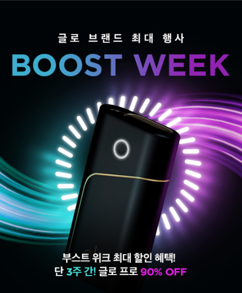 디자인부터 성능까지 어느 것 하나 아쉬움 없는 글로프로 구매를 망설이고 있는 분들이라면 90% 할인 이벤트가 진행되고 있는 지금이 구입 적기가 아닐까 합니다. 부스트위크 기간인 단 3주 동안 한정수량에 한해서만 90% 할인 이벤트가 진행되는만큼 서둘러야 할 것 같습니다.