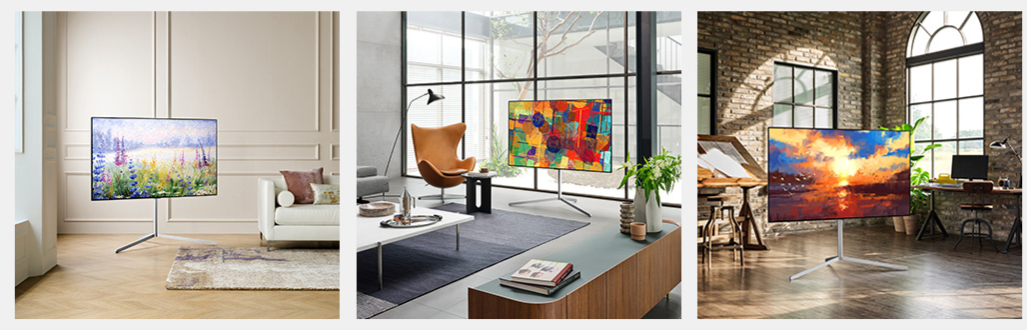 2021년 새롭게 출시된 LG 올레드 evo는 기존과 달리 여러가지가 업그레이드 되었습니다. 우선 갤러리 디자인과 갤러리 스탠드가 적용되었는데요, TV하나의 화면에 구동부와 스피커 설치를 위한 브라켓까지 담아 외부 본체없이 화면만 돋보이는 미니멀한 인테리어가 가능합니다.