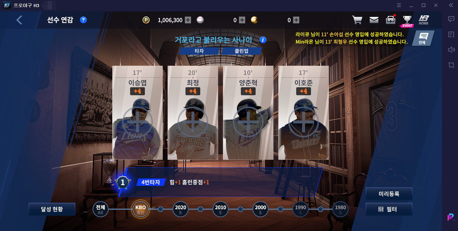 시뮬레이션게임 프로야구 H3는 모바일과 퍼플앱플레이어에서 같은 계정을 활용한 플레이를 즐길 수 있는데요, 크로스 플레이가 가능한 만큼 장소나 시간등 환경에 구애 받지 않고 보다 편안하게 플레이를 즐길 수 있습니다. 스마트폰의 작은 화면을 보다 퍼플앱플레이어를 활용해 보다 큰 화면으로 보는 시각적인 효과는 덤이고 말이죠.