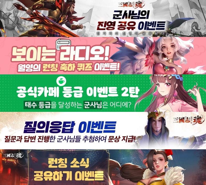 런칭 소식 공유하기 이벤트도 진행 중입니다. SNS를 통해 삼국지 혼 런칭 소식을 공유하고, 공유한 페이지 스크린샷을 촬영해 공식카페 <런칭 소식 공유> 게시판에 인증하거나, 링크를 기재하면 참여가 가능합니다. 참여한 분들 중 추첨을 통해 신세계 상품권 5만원 권과 베라 파인트 기프티콘을 선물로 준다고 하니 서둘러 참여해야 할 것 같습니다.