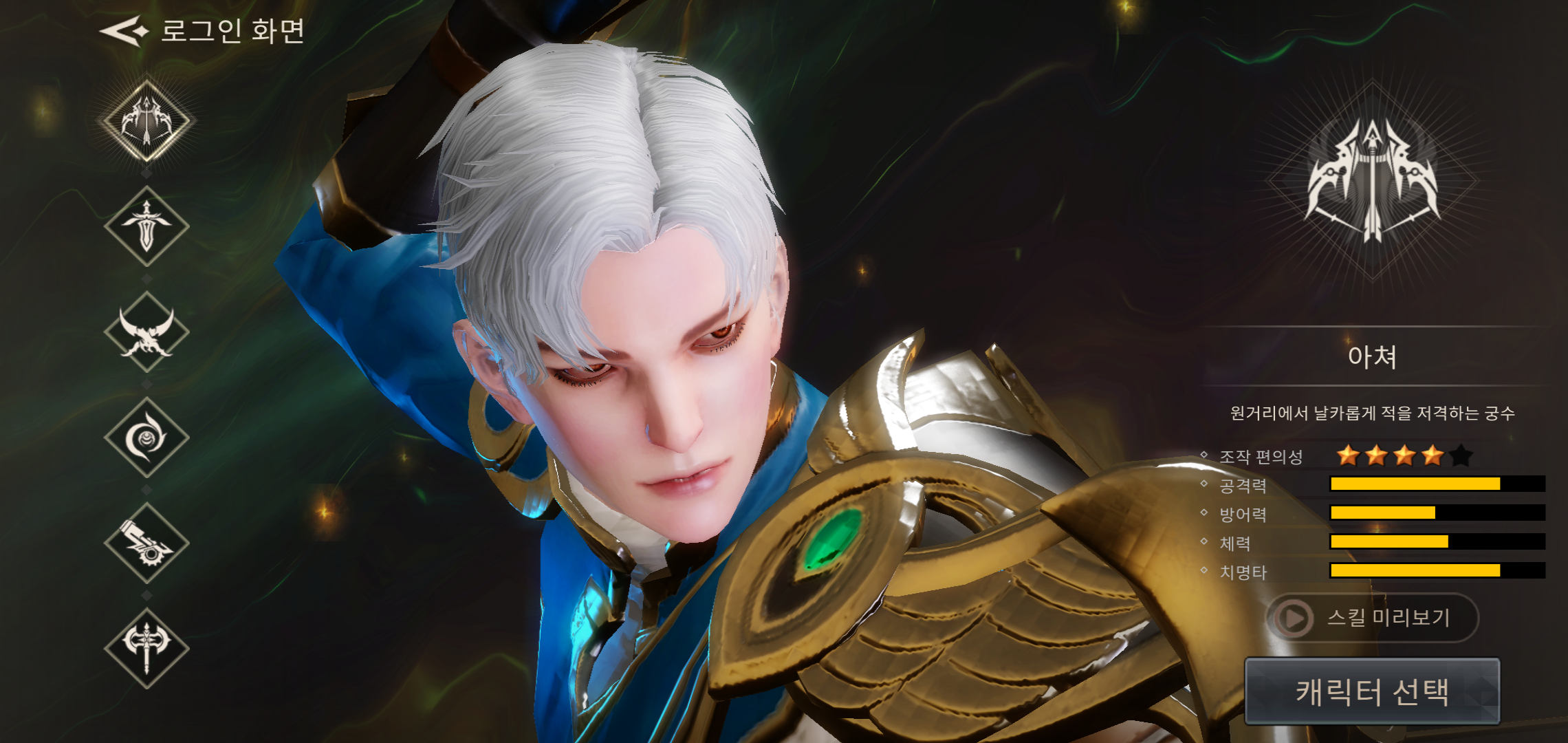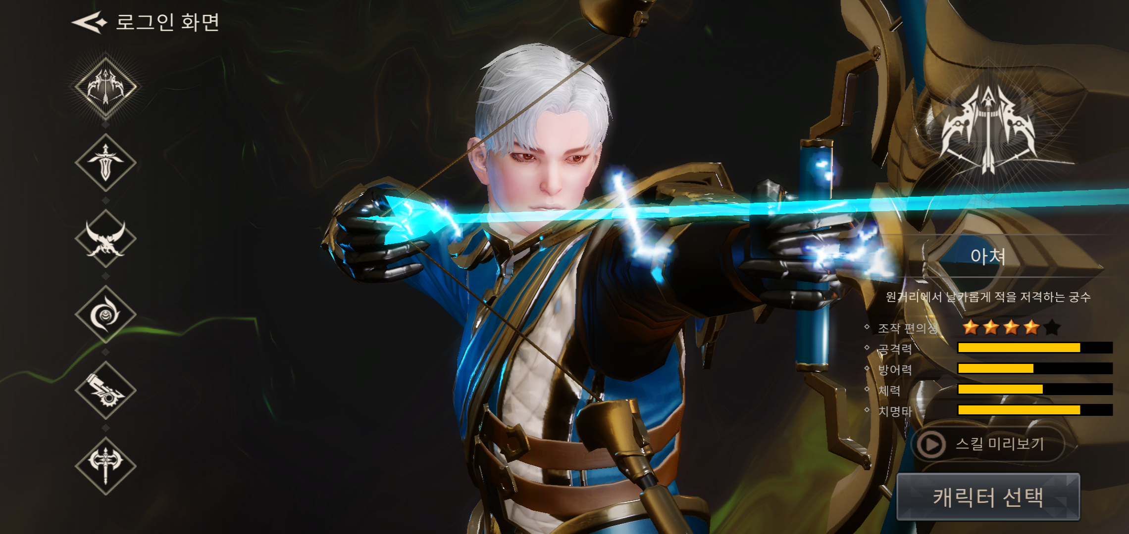 어비스에 등장한 아처는 긴 머리카락만 없을 뿐 은빛 머리칼과 하얀 피부를 더해 엘프가 연상될 정도의 외향을 가지고 있습니다. 이 상태로도 충분한 매력을 가지고 있어 원거리 딜러의 로망을 충족시켜주기에 부족함이 없을 정도 입니다.