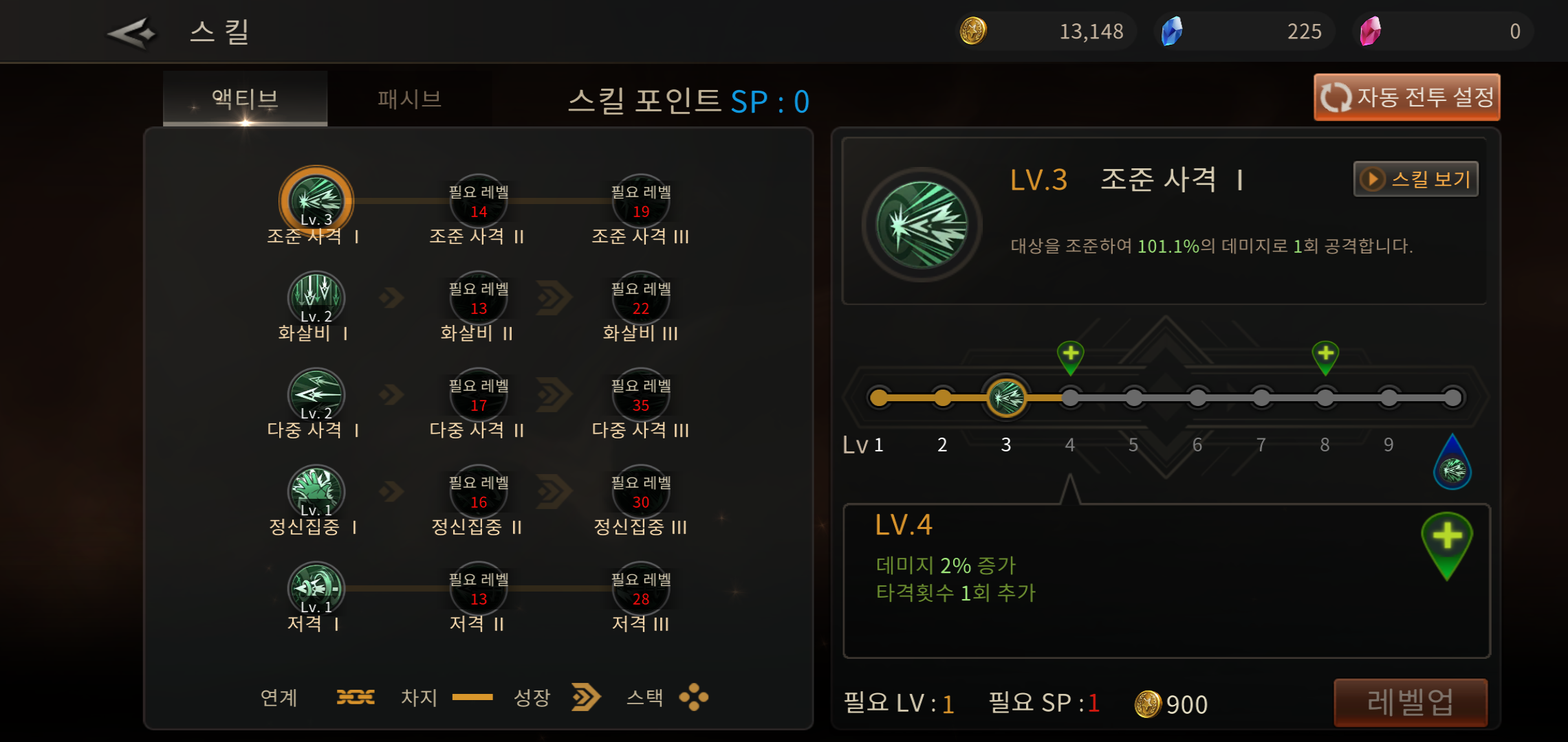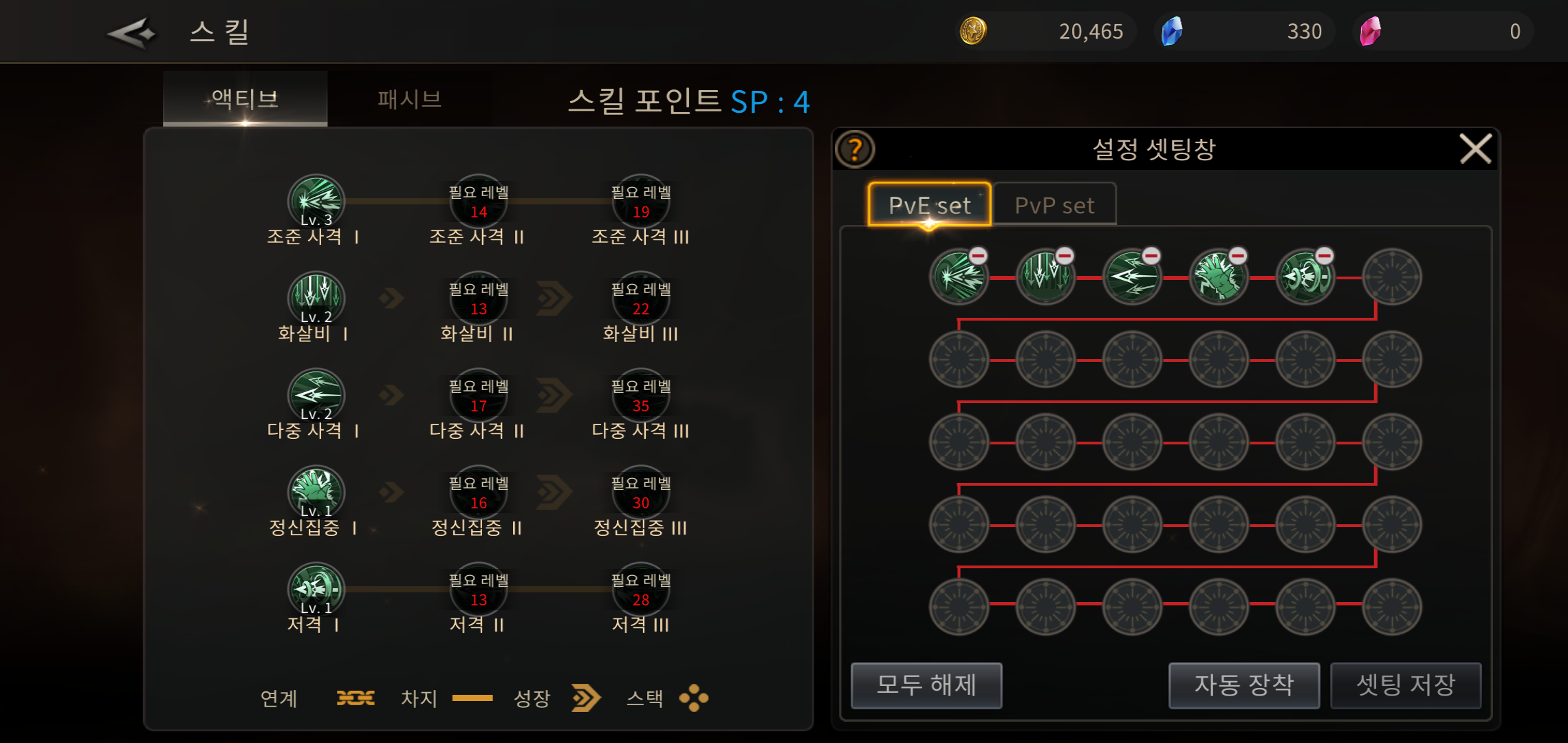 인기모바일게임 어비스 아처 클래스는 무엇보다 스킬을 잘 활용하는게 중요한 포인트이기도 합니다. 조준사격부터 화살지, 다중 사격, 정신집중 그리고 저격을 시작으로 레벨이 올라갈 수록 새로운 스킬이 오픈되는 방식인데요, 초반엔 하나의 스킬에만 힘을 실어주기 보다 적절하게 고른 포인트를 투자하는게 유리합니다.