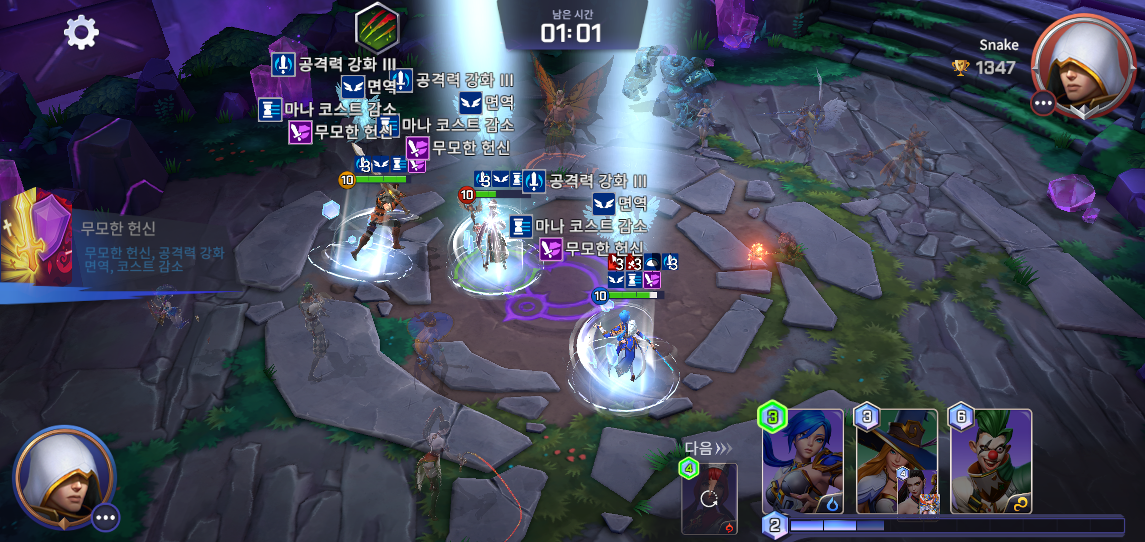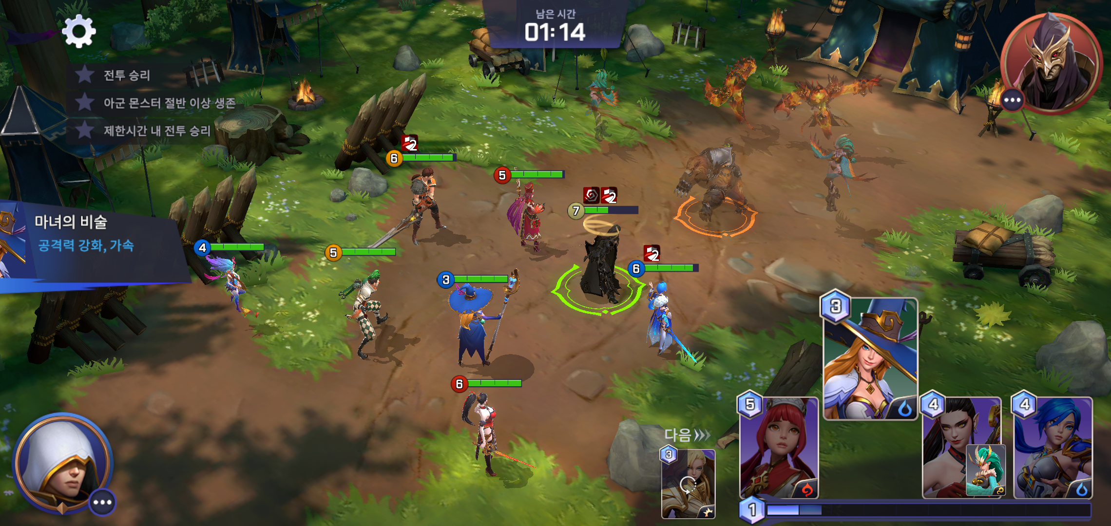 어떤 캐릭터를 가진 상대와 맞붙을지, 8인으로 구성된 캐릭터의 편성에 따른 전략과 전술이 더해져 스킬 조합과 캐릭터 조합에 따른 나만의 필승법을 찾는 과정도 재미있습니다. 대전 한번에 소요되는 시간 또한 짧지도 길지도 않아 틈틈히 즐기기에도 좋구요. 한번 해보면 몇번이고 계속 하게 되는 재미는 두말할 필요가 없을 정도 입니다.