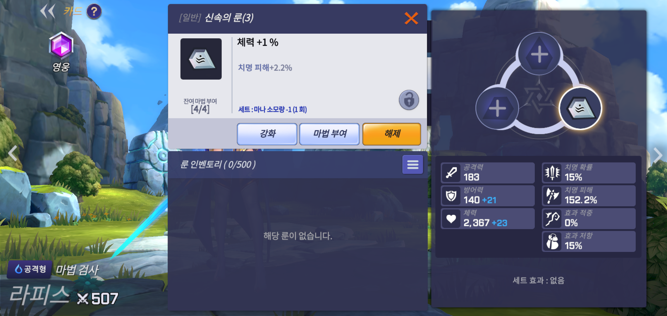 주력하는 캐릭터의 경우 스킬과 룬을 등록해 전투력을 높여주는 것이 필요한데요, 급하게 챙기는 것 보다 꾸준히 대전모드를 진행하면서 아이템을 획득해 레벨을 올려주면 됩니다. PVP를 하다보면 캐릭터에 대한 욕심이 생길 수 밖에 없는터라 대전모드를 더욱 열심히 즐기게 되지만 말이죠.