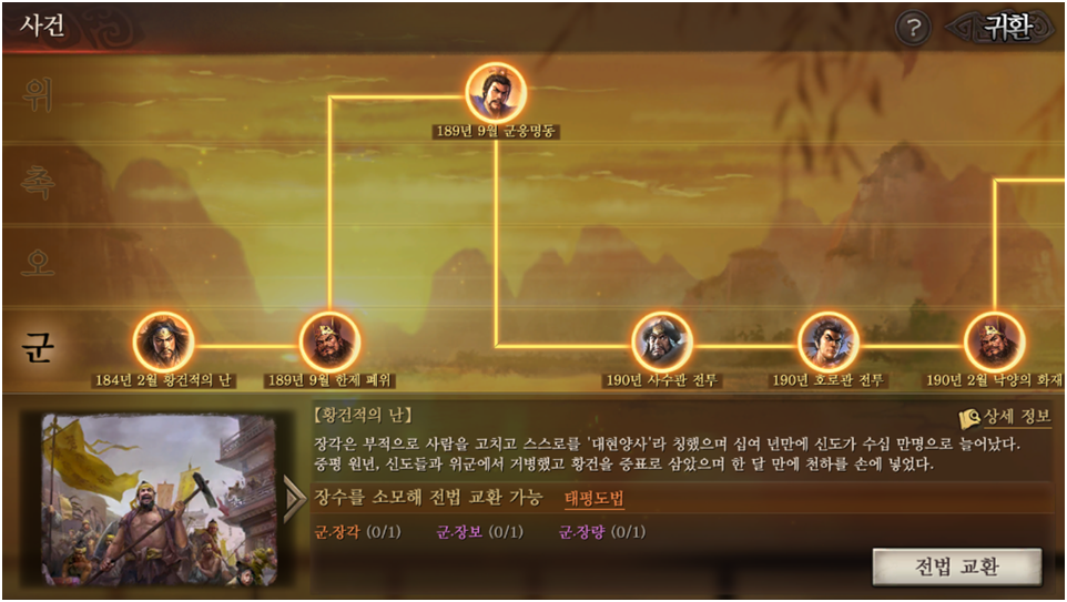 전법은 장수를 소모해 획득할 수 있기 때문에 이번 사건 전법 시스템을 공략하면 여러가지로 유리한 점들이 많습니다. 사건 전법에 따라 해당 장수로 시작하고 훈련 진도에 따라 장수를 소모해야 하지만, 필요한 전법을 획득할 수 있다는점과 탄탄한 스토리를 즐길 수 있어 삼국지에 몰입된 플레이를 즐길 수 있기도 합니다.