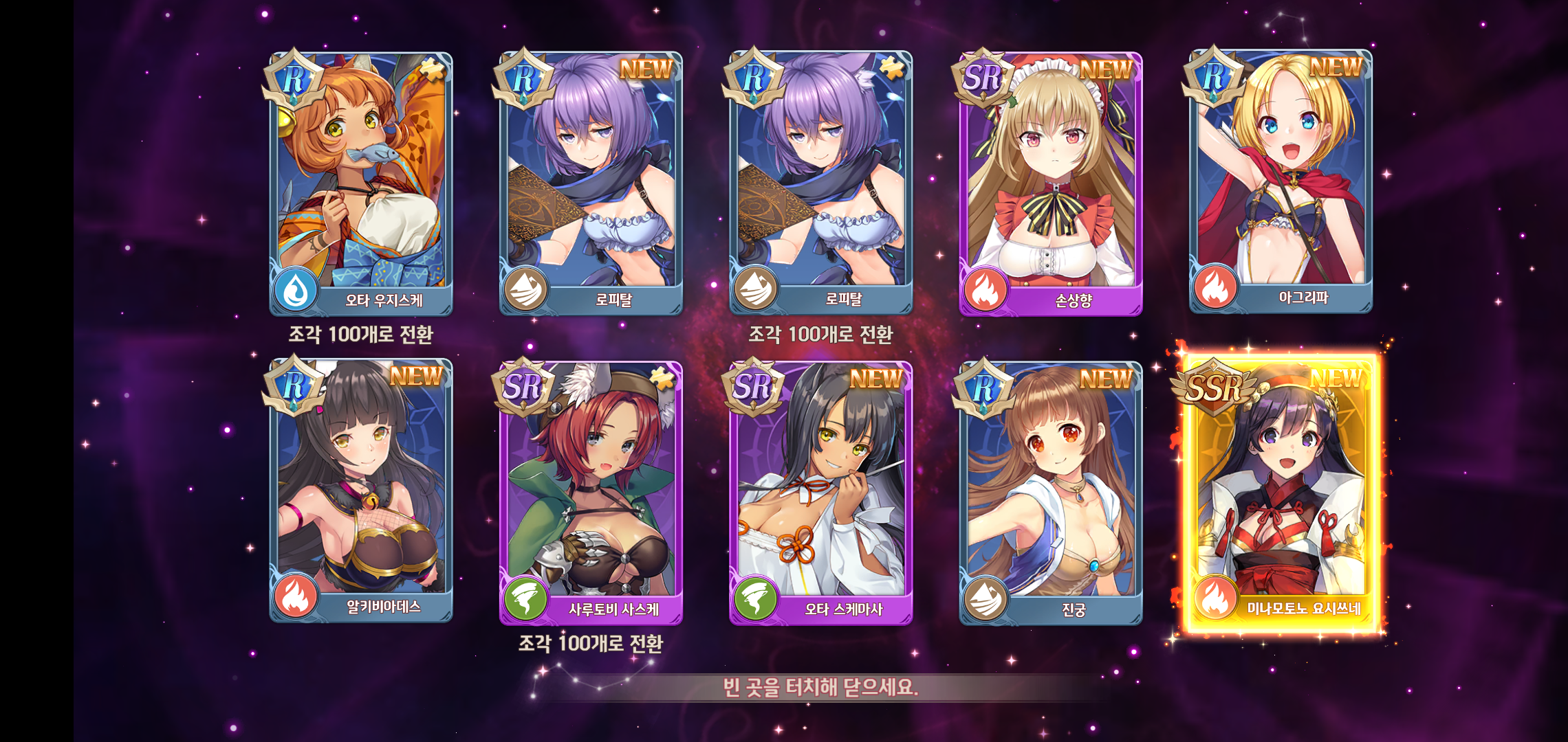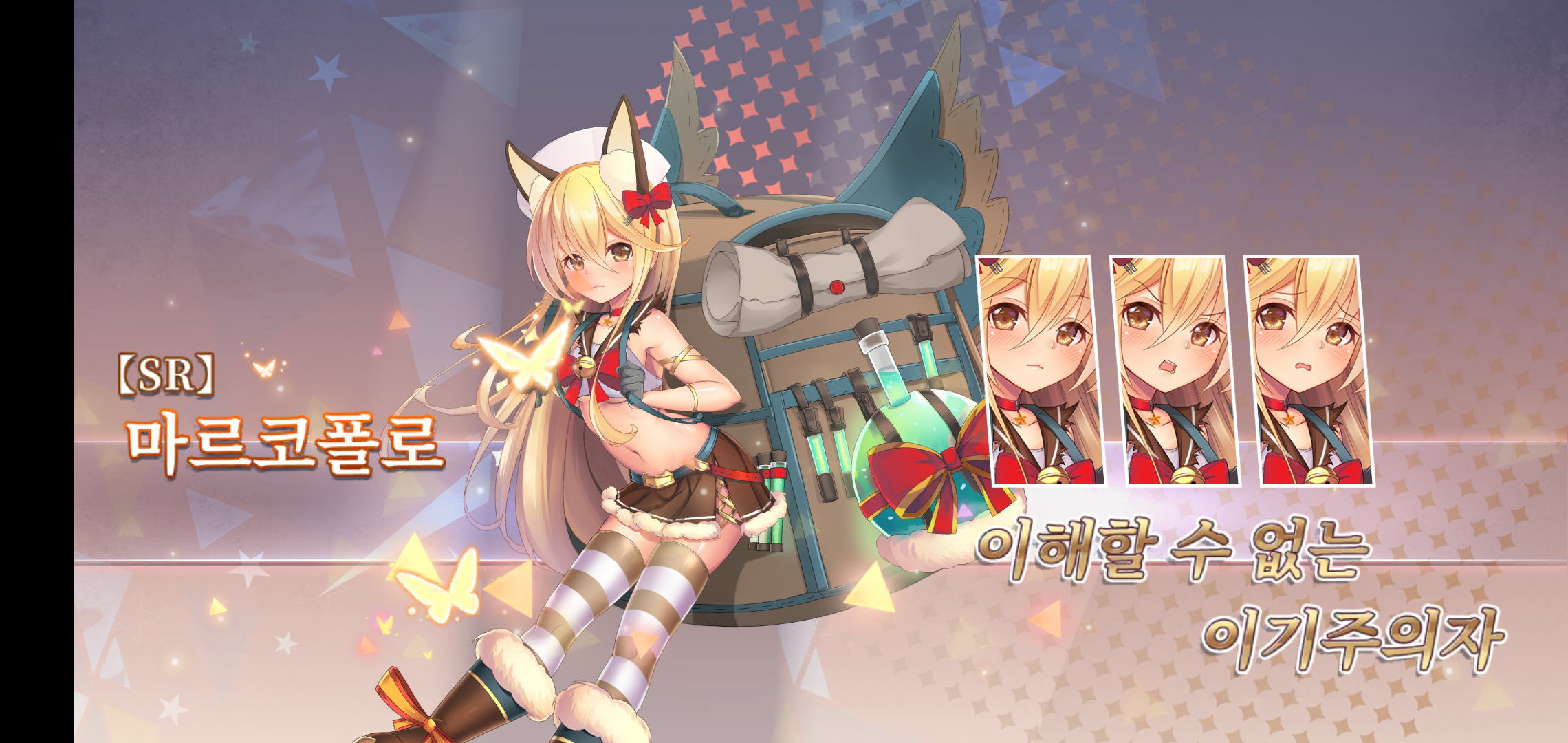 스테이지를 진행하면서 주어지는 보상을 가지고 소녀 모집을 몇 번이나 진행할 수 있었는데요, SR등급 소녀들까지는 생각보다 자주 등장합니다. SSR등급의 경우에도 심심치 않게 등장하는데요, 문제는.. 획득한 SSR등급 캐릭터가 사실상 등급표에서 언급되지 않아 아쉬울 따름입니다.