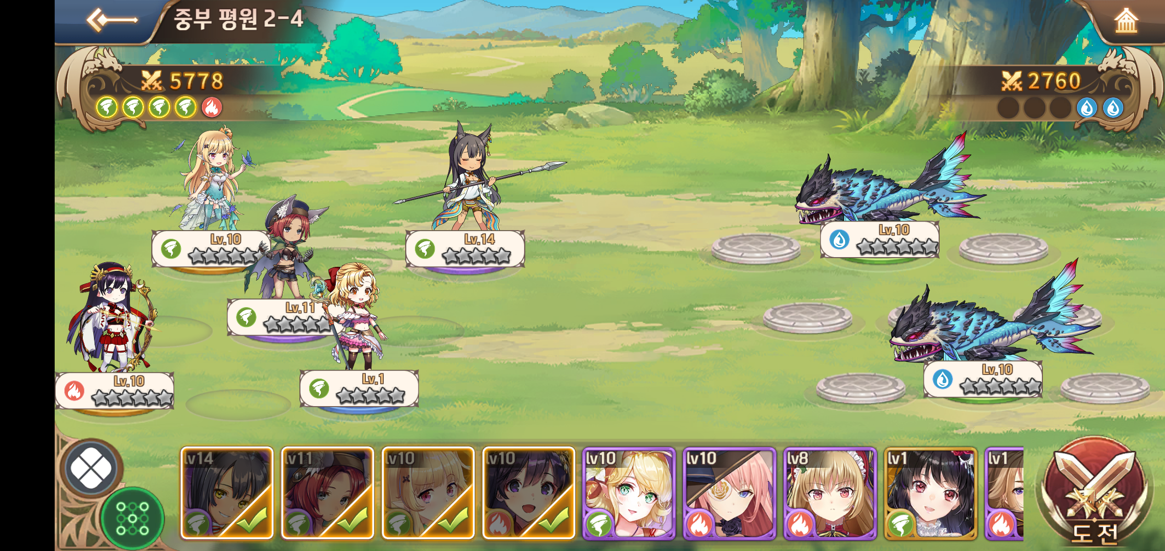전투의 기본은 보유한 캐릭터들의 특징과 개성을 살려 5인의 팀을 편성하는 점입니다. 이때 캐릭터의 역할과 속성을 고려하는 것이 무엇보다 중요한데요, 초반에는 단순히 등급이 높은 캐릭터가 최고이지만, 스테이지가 높아질 수록 캐릭터의 상성과 속성은 무척이나 중요합니다. 그래서 초반 획득하는 캐릭터 상황에 따라 리세마라가 필요하기도 합니다.