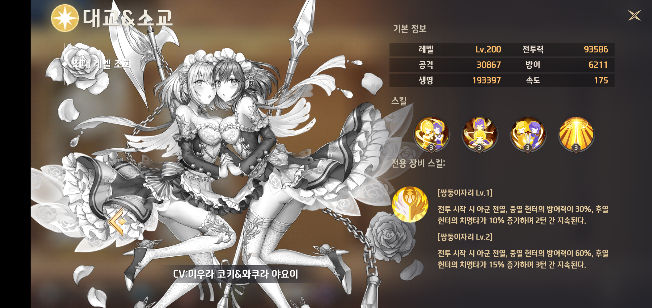 현재 공개된 등급표 SS등급에 위치한 대교&소교는 지원 캐릭터에 있어 가장 상위 티어로 평가받고 있는 캐릭터입니다. 서포터로서 성능도 좋지만, 캐릭터의 공격력을 올려주는 버프도 걸어주는데요, 리세마라를 하는 분들이라면 다른 SS등급 캐릭터도 좋지만, 대교&소교를 노리고 진행하시면 좋을 것 같습니다.