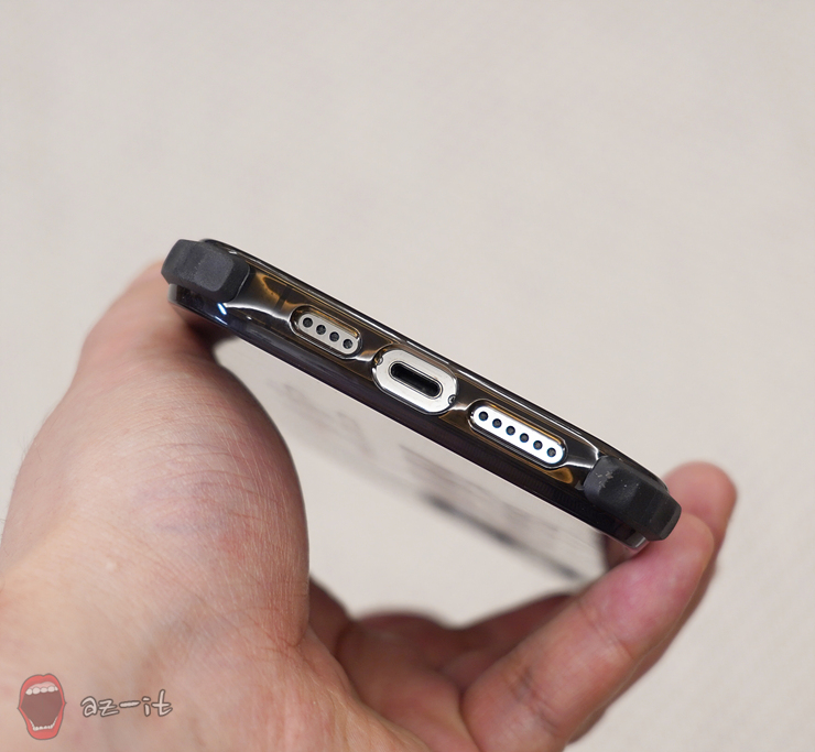 하단 스피커와 마이크 그리고 충전 단자 등이 자리하고 있는데, 정확하게 홀이 맞아떨어져 아쉬운 부분이 없었습니다. 후면부에 위치한 트리플 카메라 홀 역시 딱 맞게 떨어진 모습인데요, 정품인증과 함께 카메라 렌즈를 보호하기 위해 새겨진 케이스티파이 로고가 스타일리시한 세련미를 더해주고 있습니다.