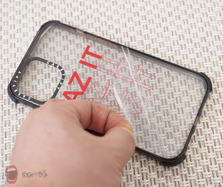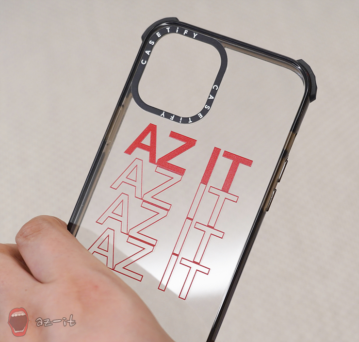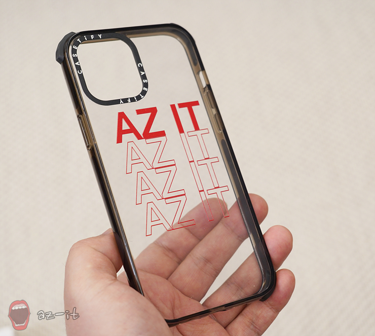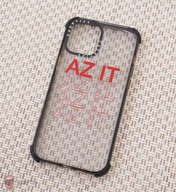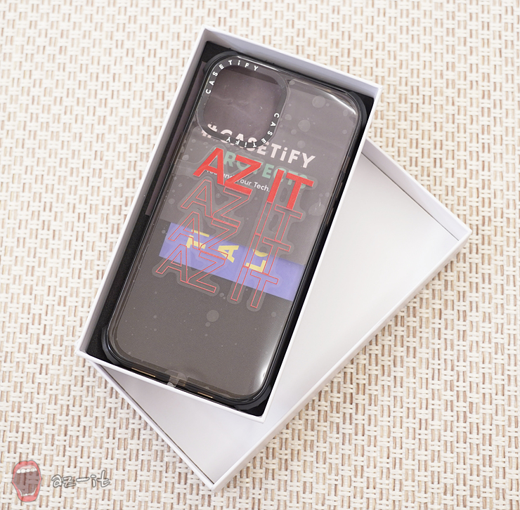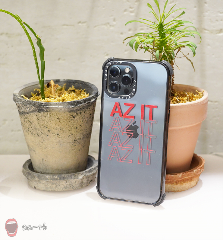 커스텀케이스의 경우 선택지가 다양해 어떤 디자인으로 선택할까 한참을 고민하다 클리어블랙의 깔끔한 라인업을 선택했습니다. 색깔이 들어가는 것도 좋지만, 아이폰 뒷면 색상을 살리는 방향으로 하고 싶었습니다. 여기에 문구는 AZIT로 심플하게 선택해 느낌을 살려보았습니다.
