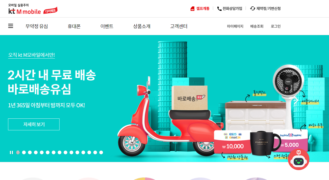 KT가 만든 대한민국 1등 알뜰폰 – kt M 모바일 공식 다이렉트몰