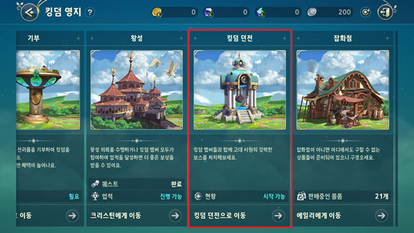 고대 마인 에피소드 추가에 이어 신규 콘텐츠 킹덤 던전이 추가되었습니다. 킹덤 유저들과 함께 진행 하면서 다양한 보상을 받을 수 있는 던전으로 킹덤 3레벨이 되면 이용 가능합니다. 주 1회 가능하며, 승리 보상과 기여도 보상외에 다양한 보상이 준비되어 있습니다.