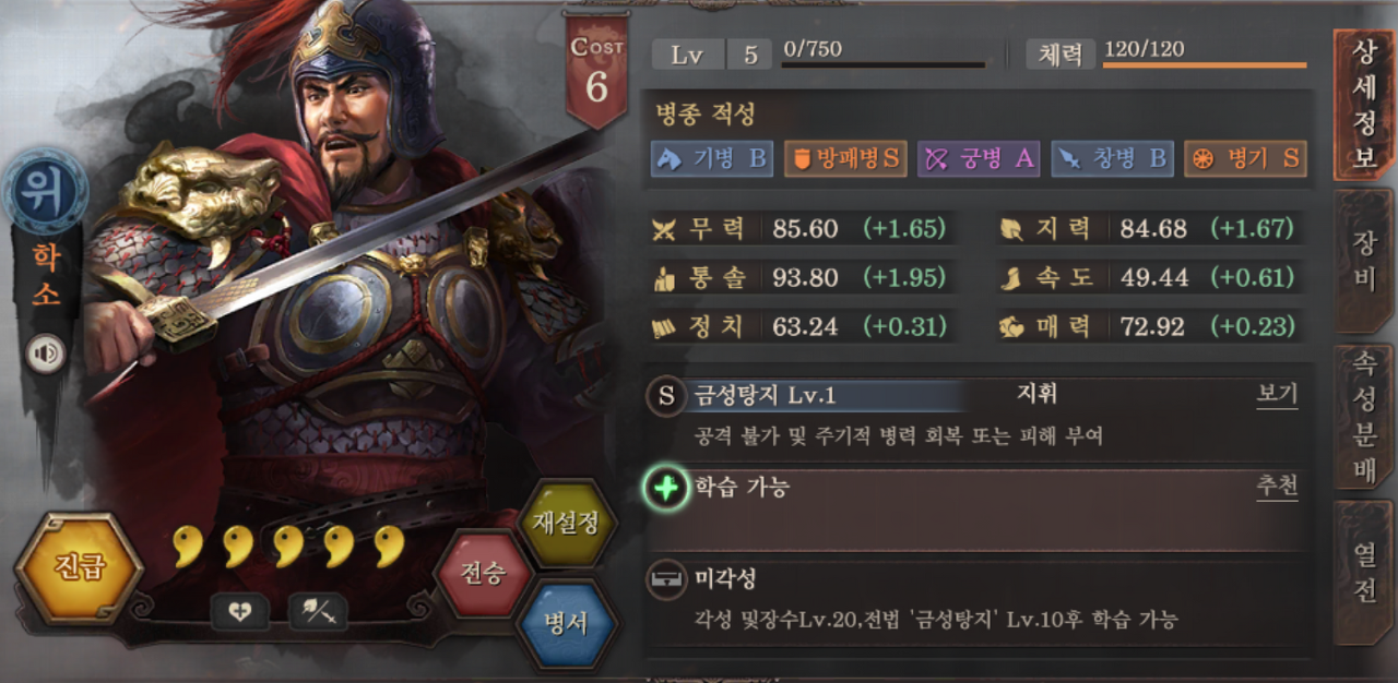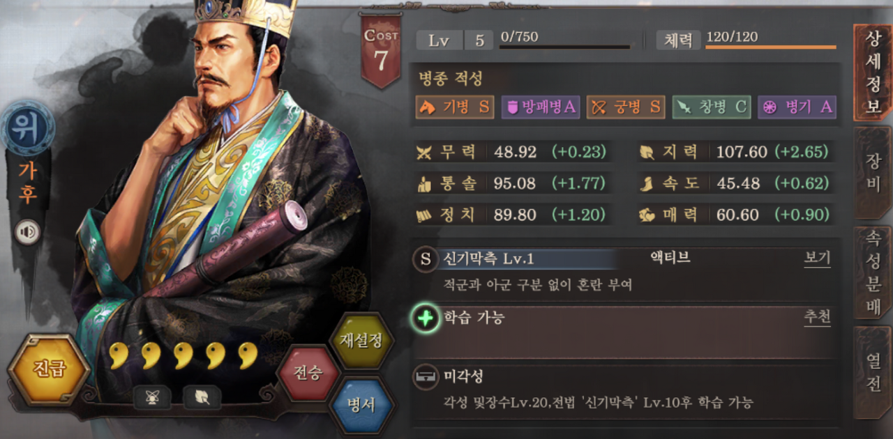 삼국지전략판 시즌3의 달라진 점은 개척 속도가 느려진 점 외에도 크고 작은 부분들이 추가되었습니다. 먼저 신규 장수 6명이 새롭게 추가된 점입니다. 위나라 책략가에 있어 높은 평가를 받고 있는 가후. 아군을 정화하고 치유하는 힐러 역할까지 맡고 있는 학소 신규 장수 콤비는 위나라 방패병덱에 있어 최적의 조건을 만들어 주기도 합니다.