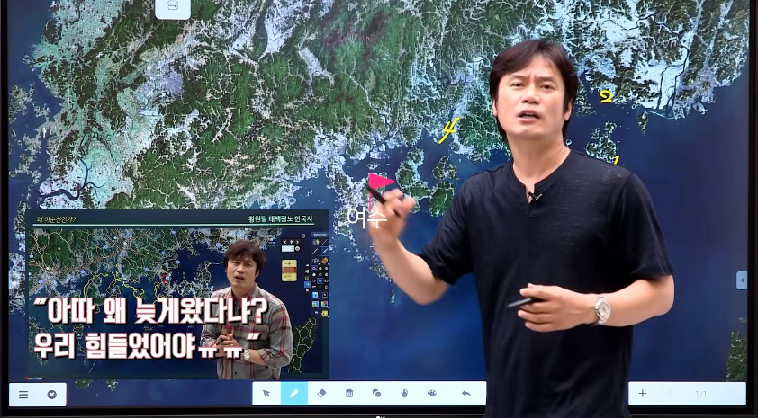 지난 이순신의 23전 23승 실화 유튜브 영상에서는 기존에 진행하던 영상과는 차이가 있었는데요, 기존에 사용하던 전자칠판에서 LG전자칠판으로 바뀌면서 영상의 선명도 차이가 확연히 느껴질 정도였습니다. 기존 전자칠판은 화면 전체를 이용하지 못했는데 전체 화면이 꽉 차더군요.