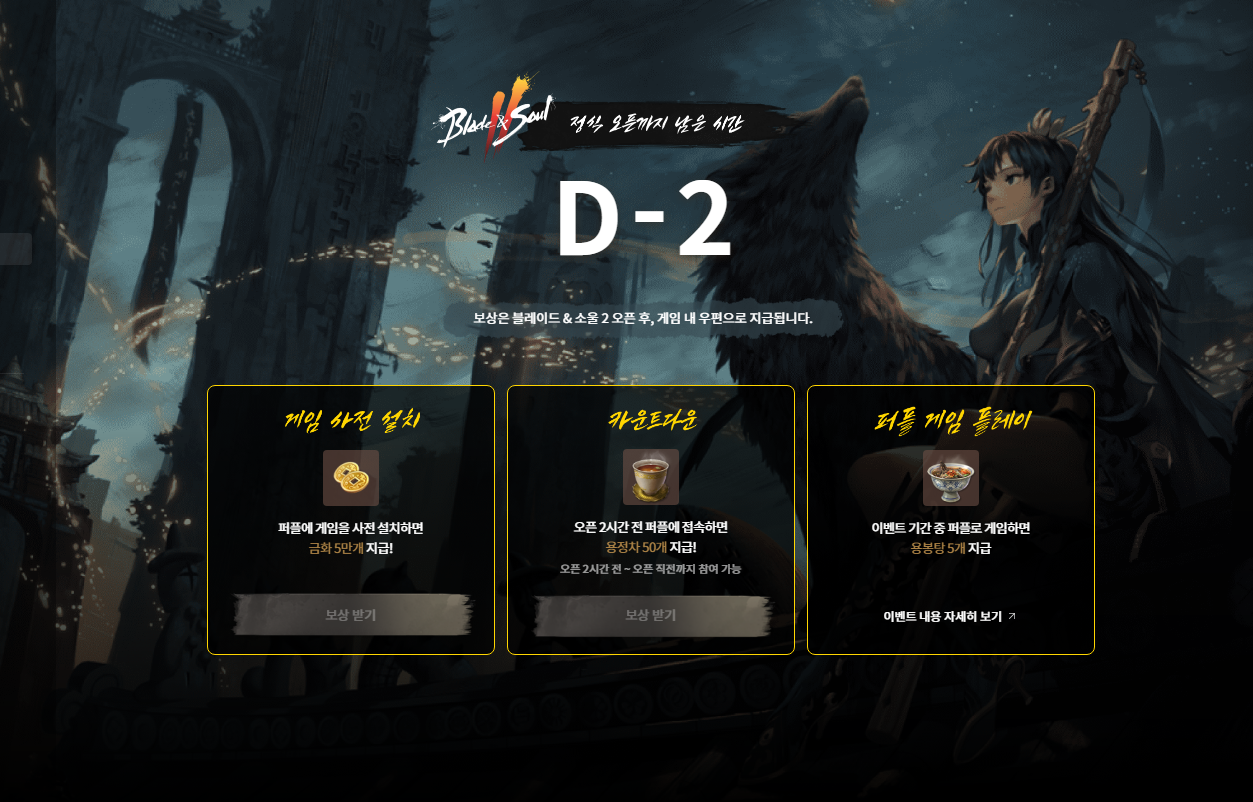블레이드앤소울2 사전다운로드가 시작된 퍼플 앱 플레이어. 게임 사전 설치 이벤트와 카운트다운 그리고 퍼플 게임플레이에 따른 이벤트도 진행 중입니다. 놓치면 아쉬운 이벤트인 만큼 퍼플 앱플레이어를 활용해 블레이드앤소울2를 보다 편리하고 재미있게 즐기고, 특별한 보상도 꼭 챙겨보시기 바랍니다!