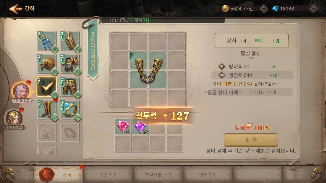 캐릭터 전투력의 경우 월드 보스나, 필드 등을 통해 획득한 아이템을 착용하고 강화하는 방식으로 올릴 수 있습니다. 이때 강화는 장비를 교체하더라도 레벨이 유지되는데요, 전직을 위한 조건에도 일정 부분 아이템 강화 내용이 포함되어 있어 꼭 챙겨주어야 합니다.