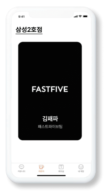 거점오피스의 경우 전에 없던 공간을 제공하는 만큼 그에 따른 시스템 도입도 필요한데요, 거점오피스 by FASTFIVE를 이용하면 기업 전용 예약 페이지 시스템이 생성되고 기업 담당자는 편리하게 PC/MO를 통해 카드키를 발급할 수 있고, 직원들 역시 개인 모바일에 출입카드를 발급받아 바로 사용 가능합니다.