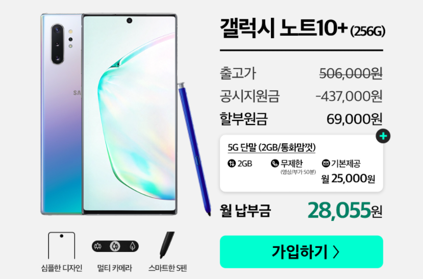 kt M모바일을 통해 구매 가능한 중고폰의 경우에도 갤럭시 S10부터 갤럭시노트10+, 아이폰 11프로 맥스 등 여러 최신폰이 준비되어 있어 선택의 폭이 넓은 점이 특징입니다. 때문에 기능적인 부분이나 디자인, 할부원금과 통신비를 감안한 선택의 폭이 넓은 점도 장점입니다.