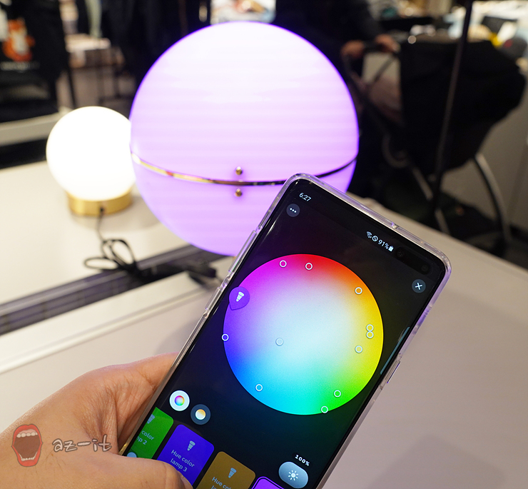 필립스 휴 WACA 벌브가 장착되어 있는 다양한 조명기기도 접할 수 있엇습니다. '화이트 앤 컬러 앰비언스 벌브'는 기존 LED 벌브와 차별화된 블루투스 방식으로 제어가 가능한 조명으로 기존 조명을 바꾸지 않아도 간편하게 설치할 수 있어 많은 분들이 선호하는 제품이기도 합니다.