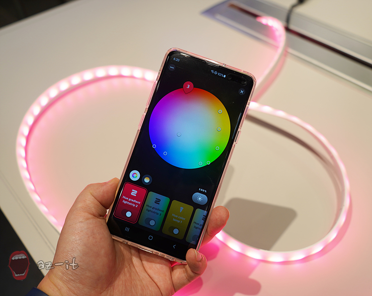무엇보다 필립스 휴 그라이언트 라이트 스트립의 경우 한 번에 한 가지 색이 표현되는 기존 조명과 달리 3가지 색상이 동시에 나타나 다채로운 컬러감을 느낄 수 있기도 한데요, 휴 브릿지가 없이 블루투스 연결만으로도 조명 원격 제어와 음성 제어가 가능하기 때문에 1600만 가지 컬러 설정부터 조명 연출, 나만의 장면 저장 등 스마트 조명의 모든 것을 경험할 수 있습니다.