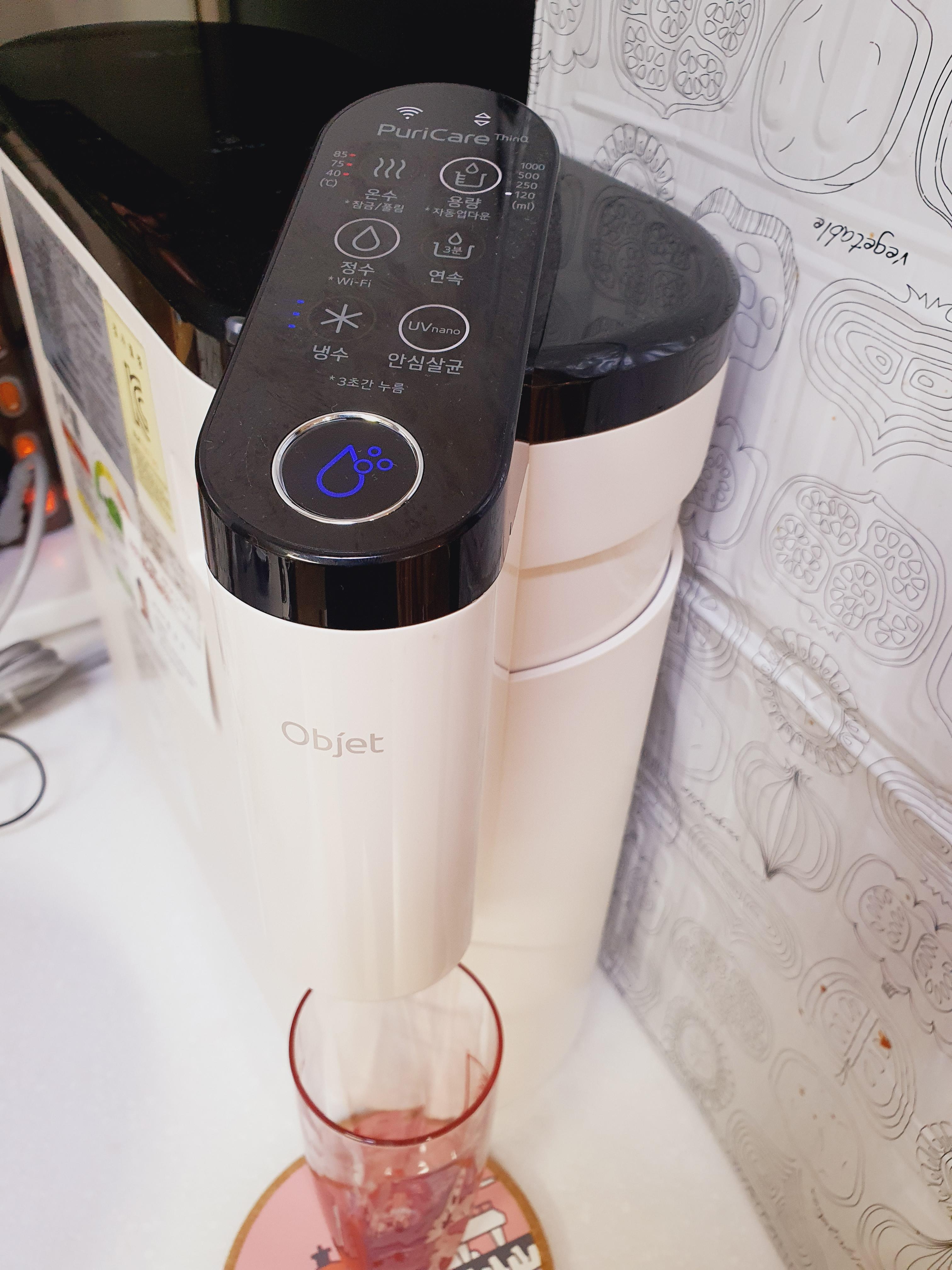 물 용량도 추가되었습니다. 사실 정수기에서 온수나 냉수 사용시 용량이 조금 아쉬운 경우가 많았어요. 커피를 자주 마시는데 120ml를 선택하기엔 양이 좀 부족하고, 500ml는 너무 많았습니다. 가끔 커피 물을 선택하고 잠시 한 눈을 팔 일이 생기기도 하는데, 500ml 용량으로 물을 붓다 난리도 아니었던 경험이 더러 있었으니 말이죠. 이젠 250ml 용량이 추가되어 보다 편하게 사용할 수 있을 것 같습니다.