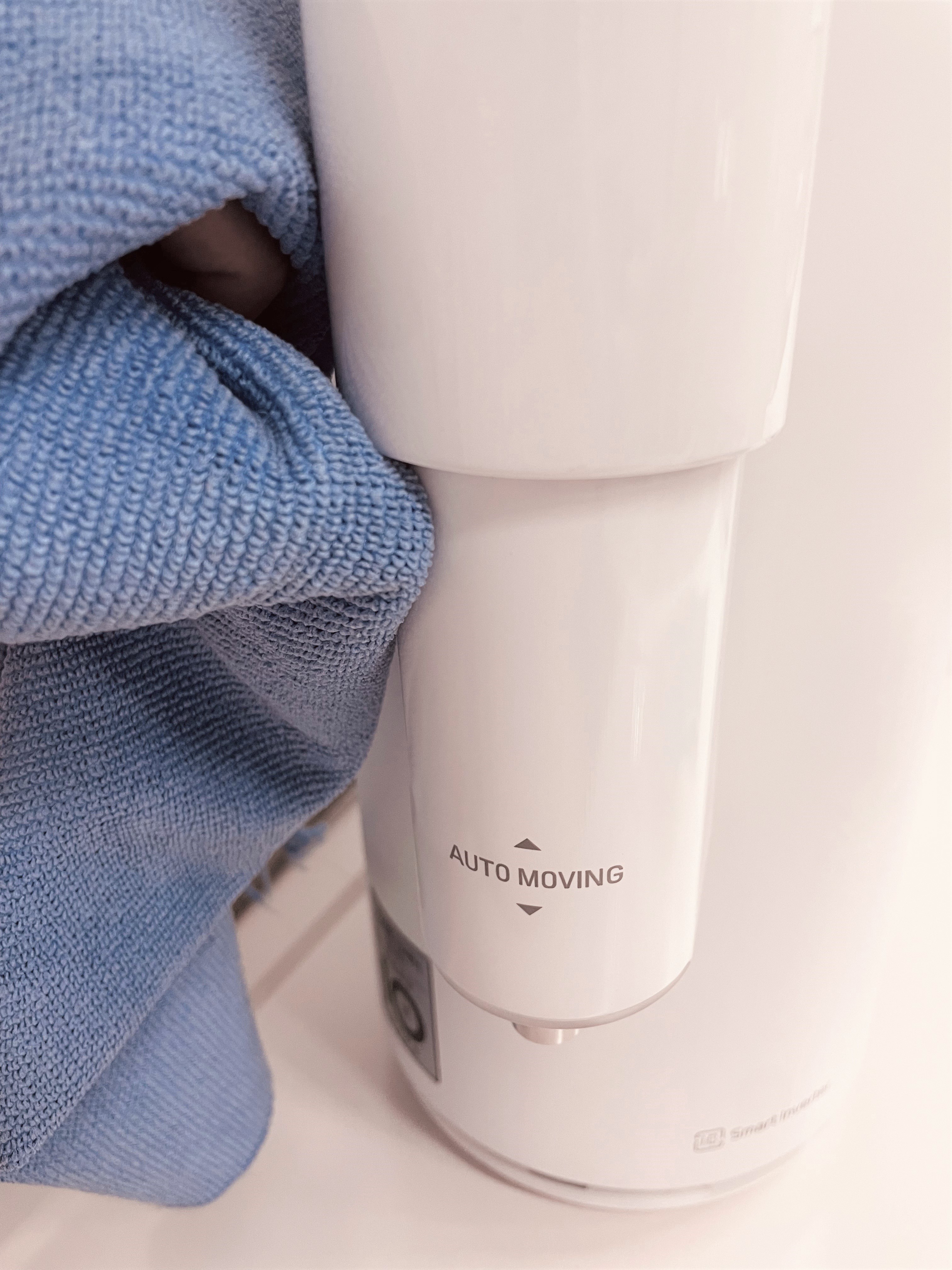아래위로 움직이는 출수탭출수 탭 안쪽 청소도 중요한데요, 이때는 청소 모드를 선택하면 됩니다. 청소모드를 실행하면 출수 탭이 내려와 고정되는데요, 이때 안쪽을 깨끗하고 부드러운 천이나 행주로 닦아주고, 필요한 경우 물을 조금만 묻혀 청소해주면 됩니다. 청소 모드를 해제하면 출수 탭은 바로 올라가게 되는데요, 이때 출수 탭이 움직일 때 신체나 천등이 닿으면 위험하니 청소 중 모드가 해제되지 않도록 주의가 필요합니다.