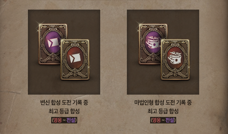 영웅 등급 이상 합성 이력이 없다면 전문 복구사 지니에게 가지 않더라도 제작 탭을 활용해 희귀 변신 뽑기 카드와 마법인형 중 원하는 뽑기권을 선택해 제작을 할 수 있습니다. 제작이 완료되면 희귀 변신 또는 희귀 마법인형 뽑기권을 인벤토리에서 확인할 수 있고, 뽑기권 사용 시 랜덤 하게 희귀 변신 또는 마법인형 획득이 가능합니다.