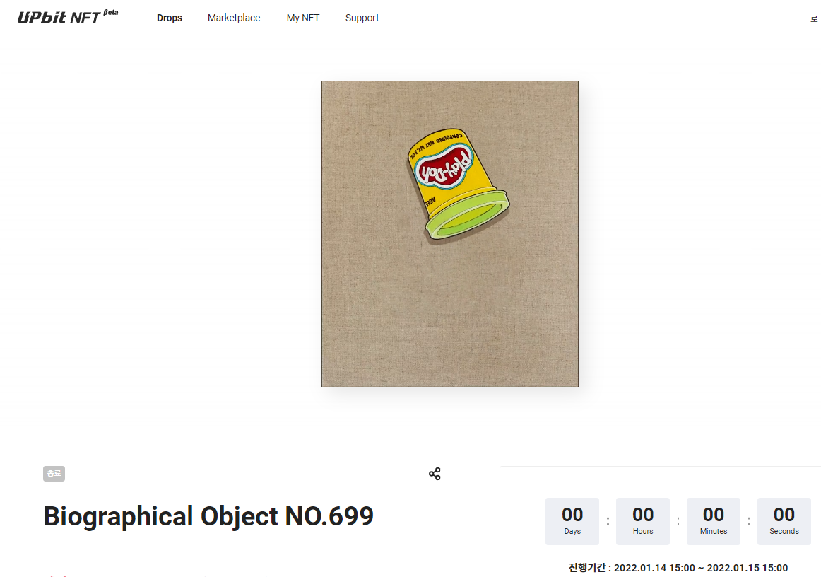드롭스의 경우 유명 크리에이터의 NFT를 가장 먼저 만나볼 수 있는 마켓입니다. 드롭스에는 리스트를 확인하고, 업비트 계좌 내 BTC로 입찰이 가능합니다. 또한 드롭스에 출품된 작품들의 경우 마감시간이 정해져 있어 기한 내 입찰을 진행해야 합니다.