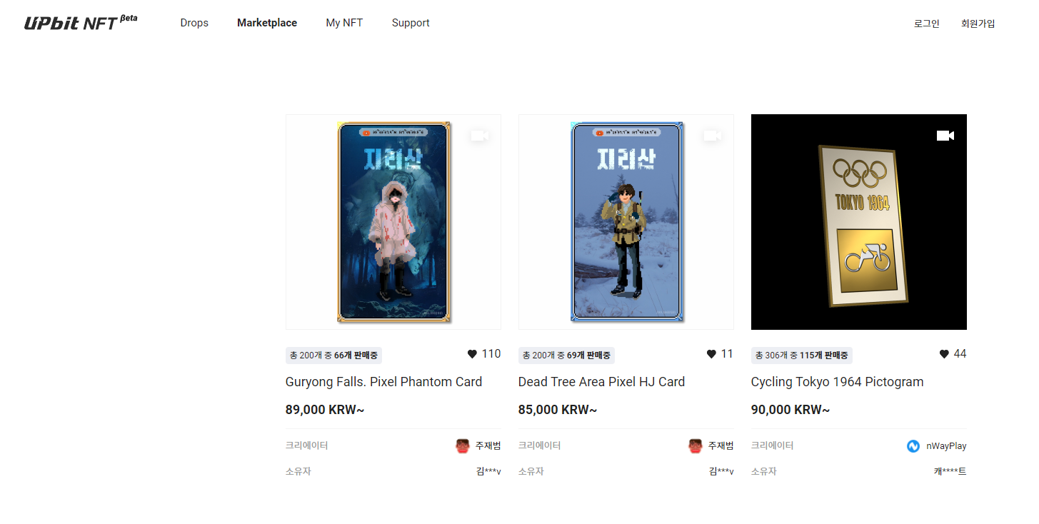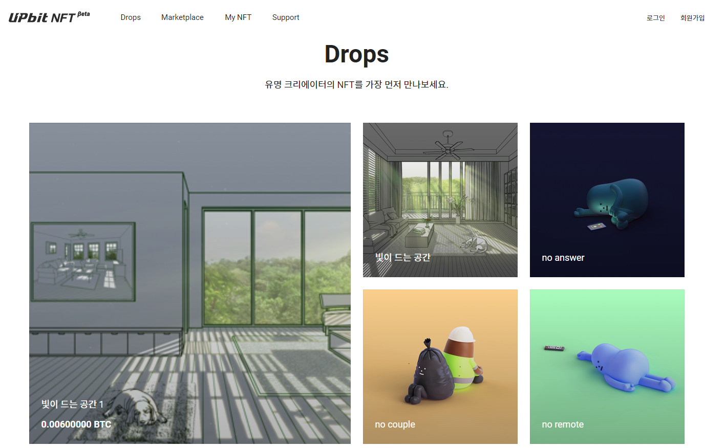 특히 업비트 NFT beta에서는 드롭스와 마켓플레이스 방식을 통한 활발하고 자유로운 거래과 이루어지고 있어 디지털 자산에 관심 있는 분들이라면 눈여겨보셔도 좋을 것 같습니다. 새롭게 경매 진행되는 NFT의 가치를 평가하고 소유까지 어렵지 않게 거래가 가능하니 말이죠.