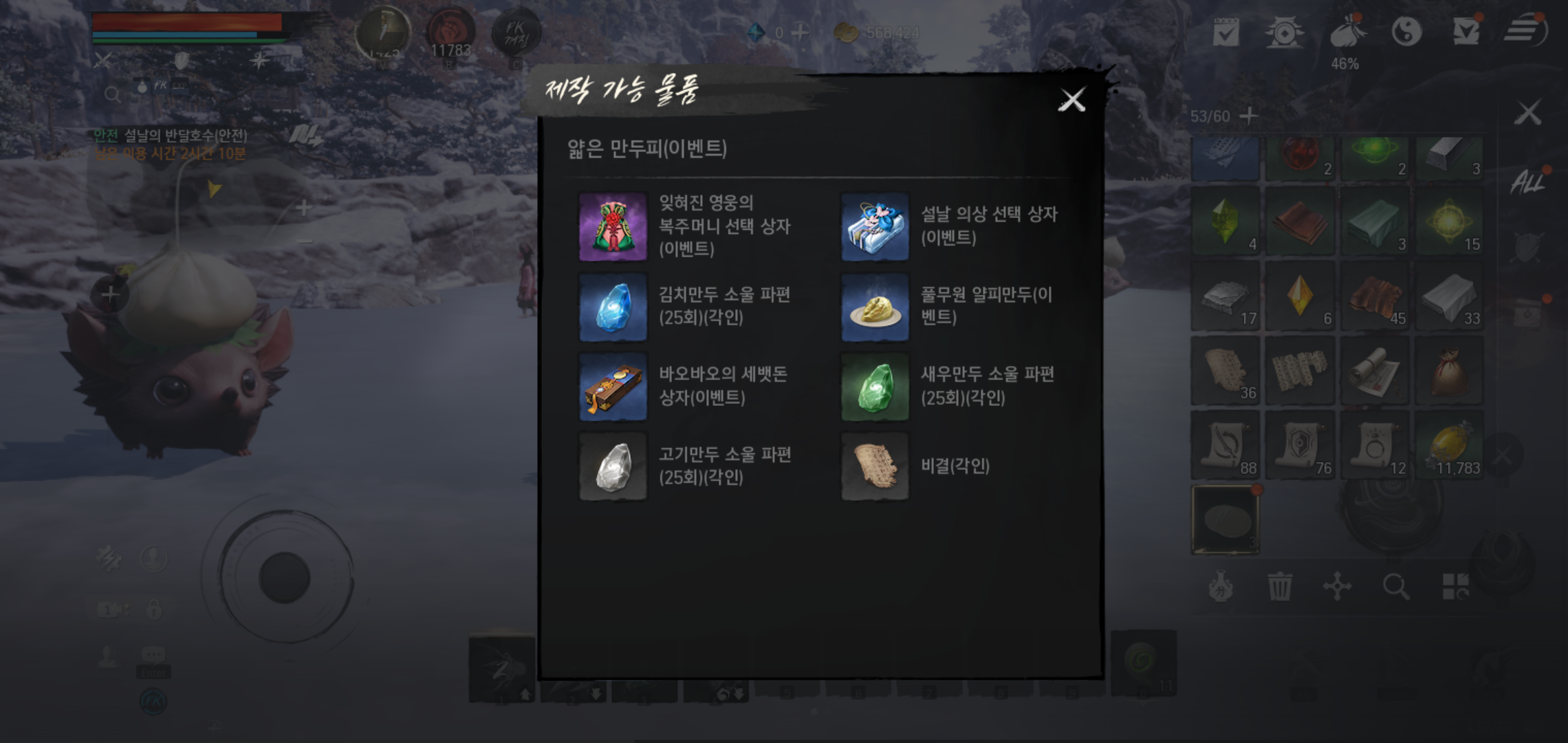 설날의 반달호수 던전 사냥은 어렵지 않은데요, 경험치와 금화를 획득할 수 있는 동시에 제작 재료인 얇은 만두피 아이템까지 획득할 수 있어 일거양득입니다. 얇은 만두피 드랍률이 크게 높은 편은 아니라서 아쉽긴 하지만, 안전지대에서 경험치와 금화를 획득할 수 있는 기회만으로도 챙겨야 하는 이유는 충분할 것 같아요.
