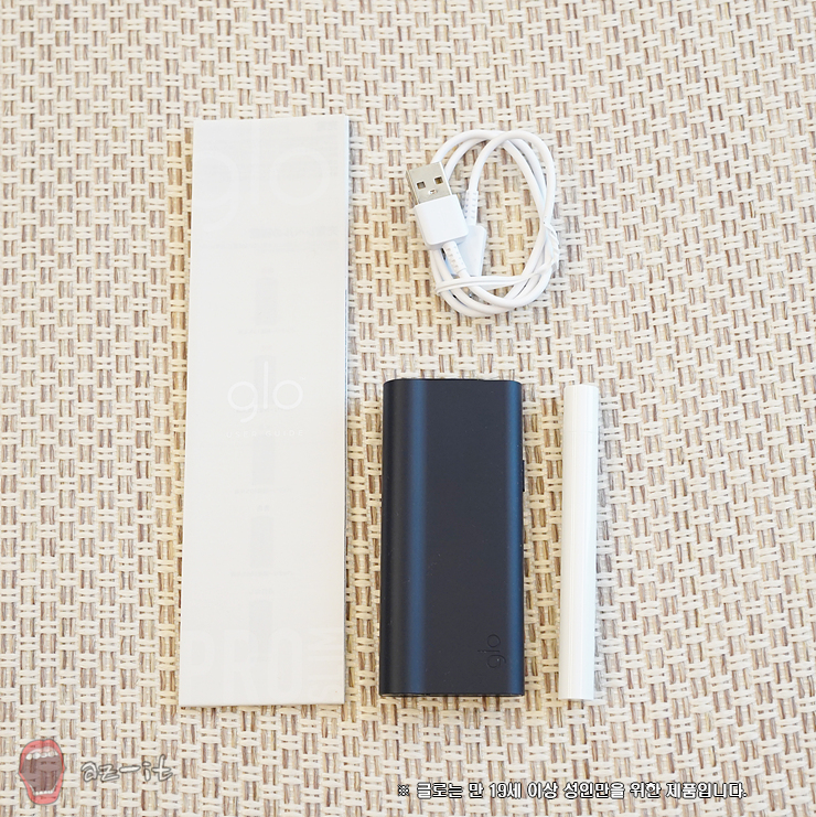 달라진 케이스를 열어보면 기존 구성과 크게 변동 없는 구성품을 확인할 수 있습니다. 글로 프로 슬림 본체와 글로벌 설명서 그리고 충전 케이블과 세척솔로 군더더기 없는 꼭 필요한 구성으로 준비되어 있는 모습을 확인할 수 있습니다.