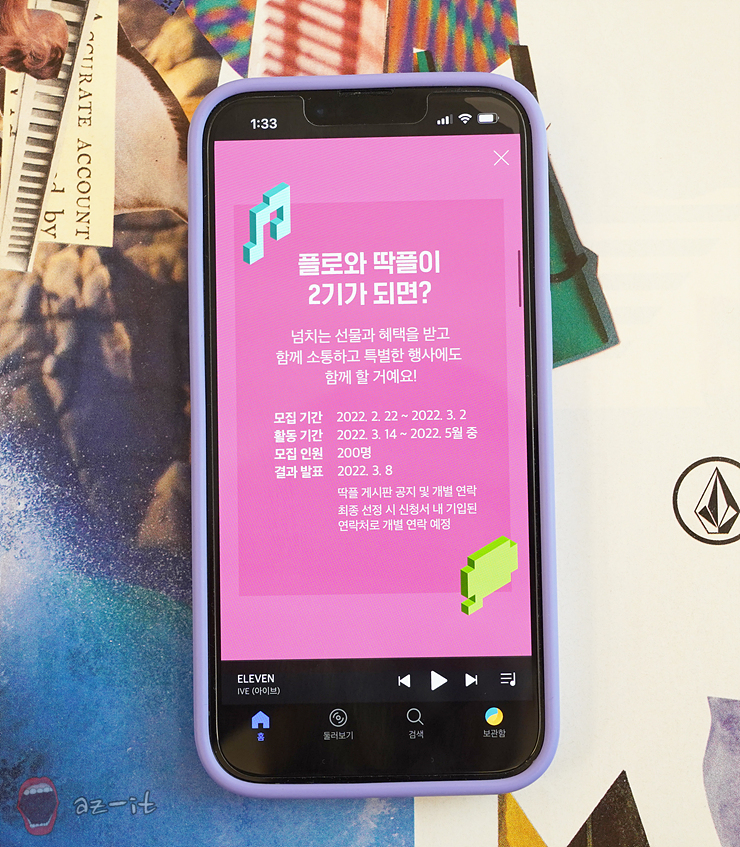 플로를 애정하는 분들이라면 2월 22일부터 모집하는 플로와 딱플이 2기에 도전해 보면 좋을 것 같습니다. 플로를 사랑하고 애정 하는 플로 찐팬 200명을 선정하는 프로모션인데요, 지난 1기 활동을 보면 정말 다양하고 재미있는 활동들이 가득하더라구요.