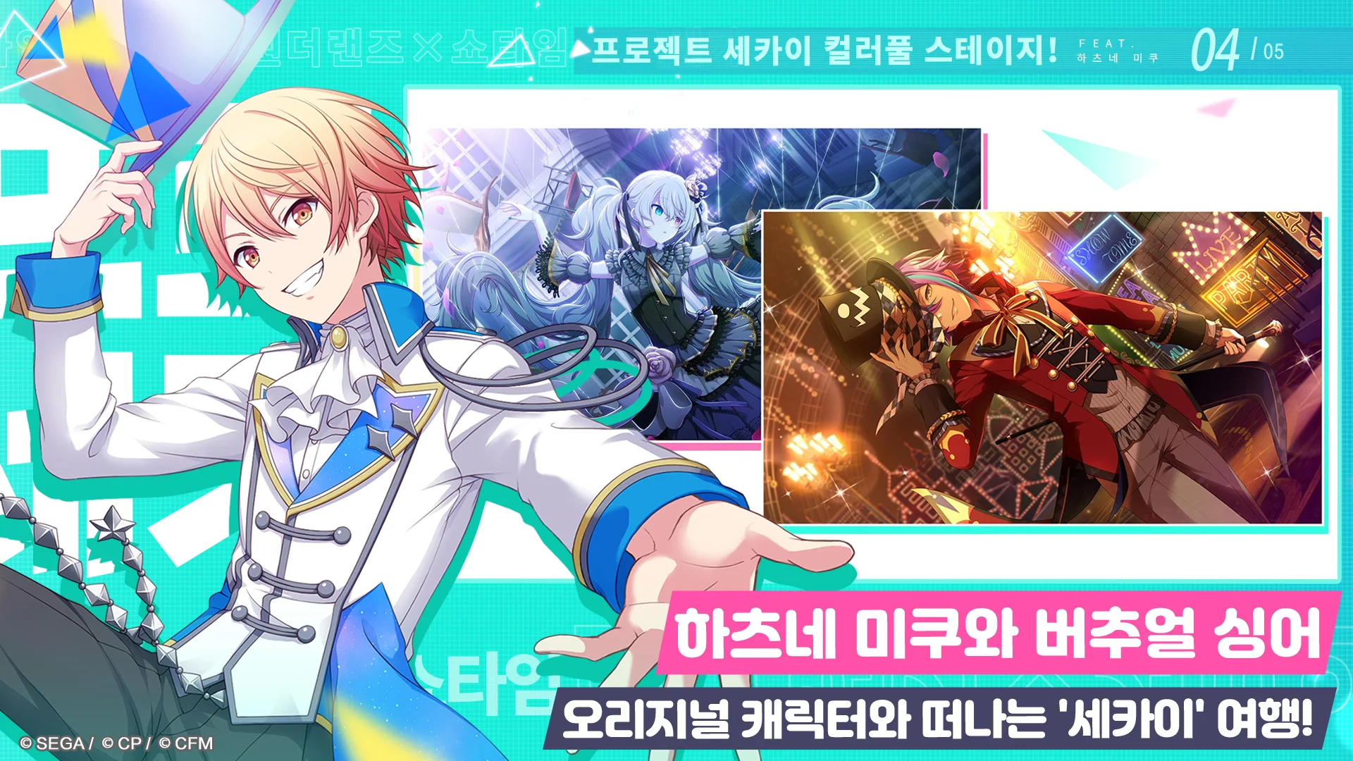 모바일 리듬게임 프로젝트 세카이를 통해 하츠네 미쿠, 카가미네 렌, 카가미네 린, 메구리네 루카, 메이코, 카이토 등 여섯 명의 버추얼 싱어가 존재하며 해당 싱어와 함께 현실 세계와 세카이라는 전혀 다른 두 무대 속 스토리를 즐기는 새로운 경험도 준비되어 있습니다.