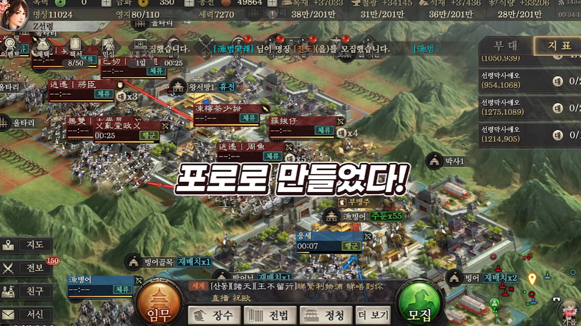 BJ타요는 글로벌 1조 홍콩, 마카오, 대만 서버가 동맹을 이룬 조위 진영과 한국 서버 동맹으로 구성된 손유 진영은 정면으로 대치하고 있는 상황인데요, 손유 진영이 조위 진영에 밀리는 양상을 보이고 있습니다. 전선 자체가 많이 내려온 상황으로 자원에 대한 우려가 조금씩 터져 나오는 중이기도 합니다.