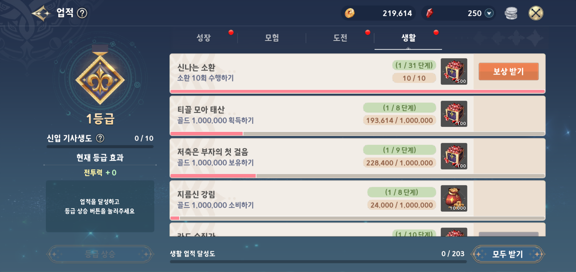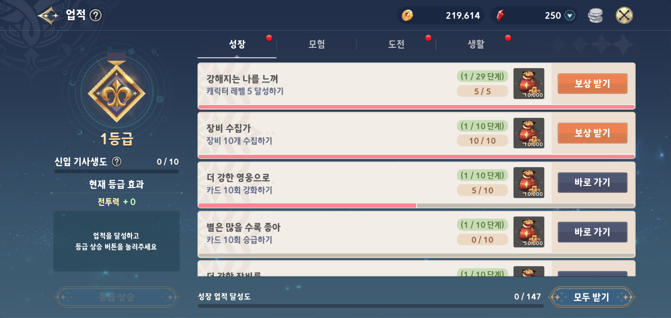 탄탄한 스토리라인으로 몰입도를 높여주는 동시에 기존 세븐나이츠와 마찬가지로 인게임 재화도 많이 주는 편이라 꼭 과금을 하지 않더라도 충분히 즐길 수 있을 정도입니다. 조금만 부지런히 플레이를 하면 출석 보상부터 시작해 도전 임무, 생활, 업적 보상 인연 도감 등 통해 획득 가능한 재화도 상당하고요.