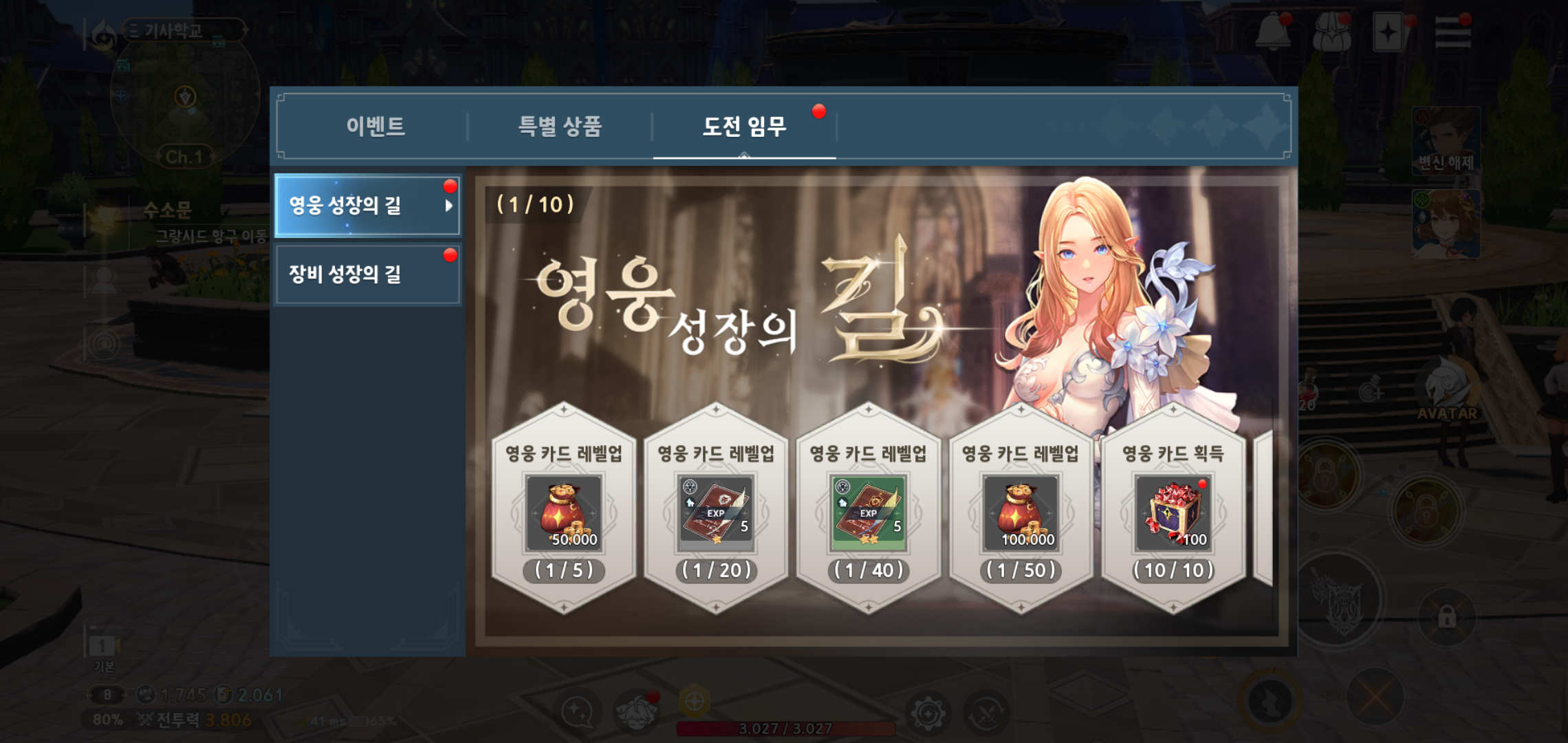 특히 수집한 영웅 아바타에 따른 전투, 플레이가 달라지는 독특한 시스템을 가지고 있는 만큼 장비와 영웅 카드 수집이 중요한데요, 도전 임무를 통해 진행 가능한 영웅 성장의 길과 장비 성장의 길을 활용하면 보다 수월하게 영웅 카드와 장비를 획득할 수 있어 초반 스펙을 맞추기가 수월한 편입니다. 주어진 임무도 어렵지 않으니 이제 막 시작하는 분들이라면 꼭 챙기시길 추천드립니다.