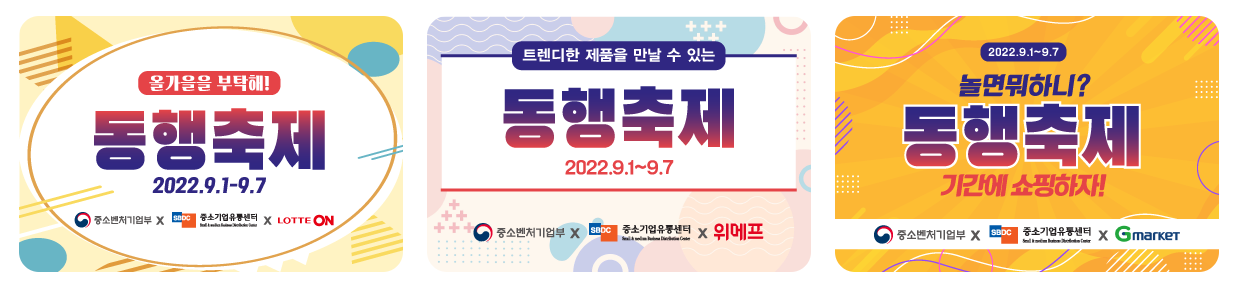 2022. 9. 1 ~ 9.7 / 대한민국 경제의 새로운 활력을 위해 대형 유통센터부터 중소기업, 소상공인 등 다양한 주체들이 다 함께 참여하는 대규모 할인 판촉행사 (구: 대한민국 동행세일)