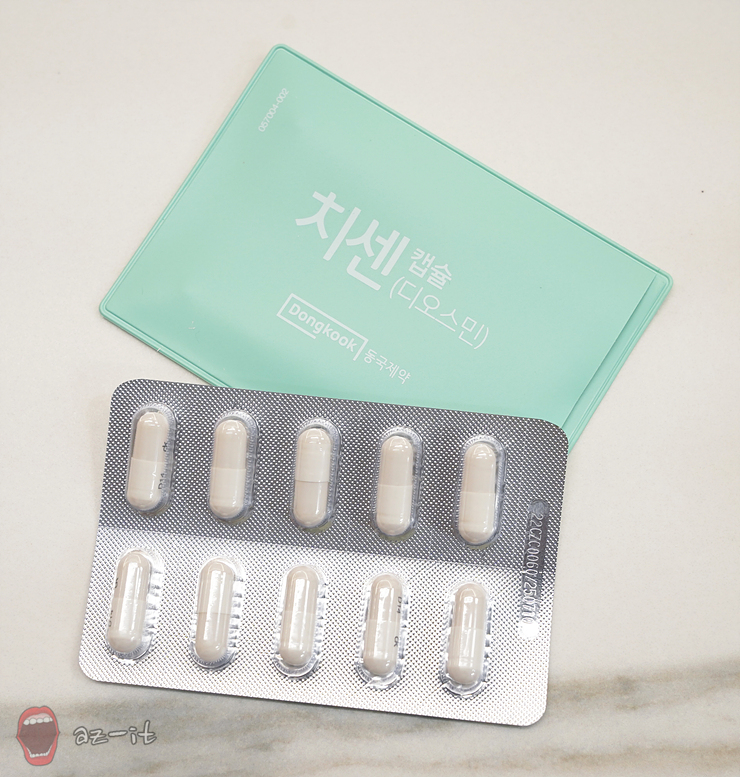 치센의 주요성분인 디오스민은 감귤류에서 추출하는 헤스페리딘에서 구조를 변형시켜 만드는 식물성 플로보노이드 성분입니다. 디오스민을 주성분으로 하는 만큼 치질의 주요 증상인 통증과 출혈을 완화 시키는데 도움을 주는데요, 1일 2회 점심과 저녁 식사 시 복용하는 방식입니다.
