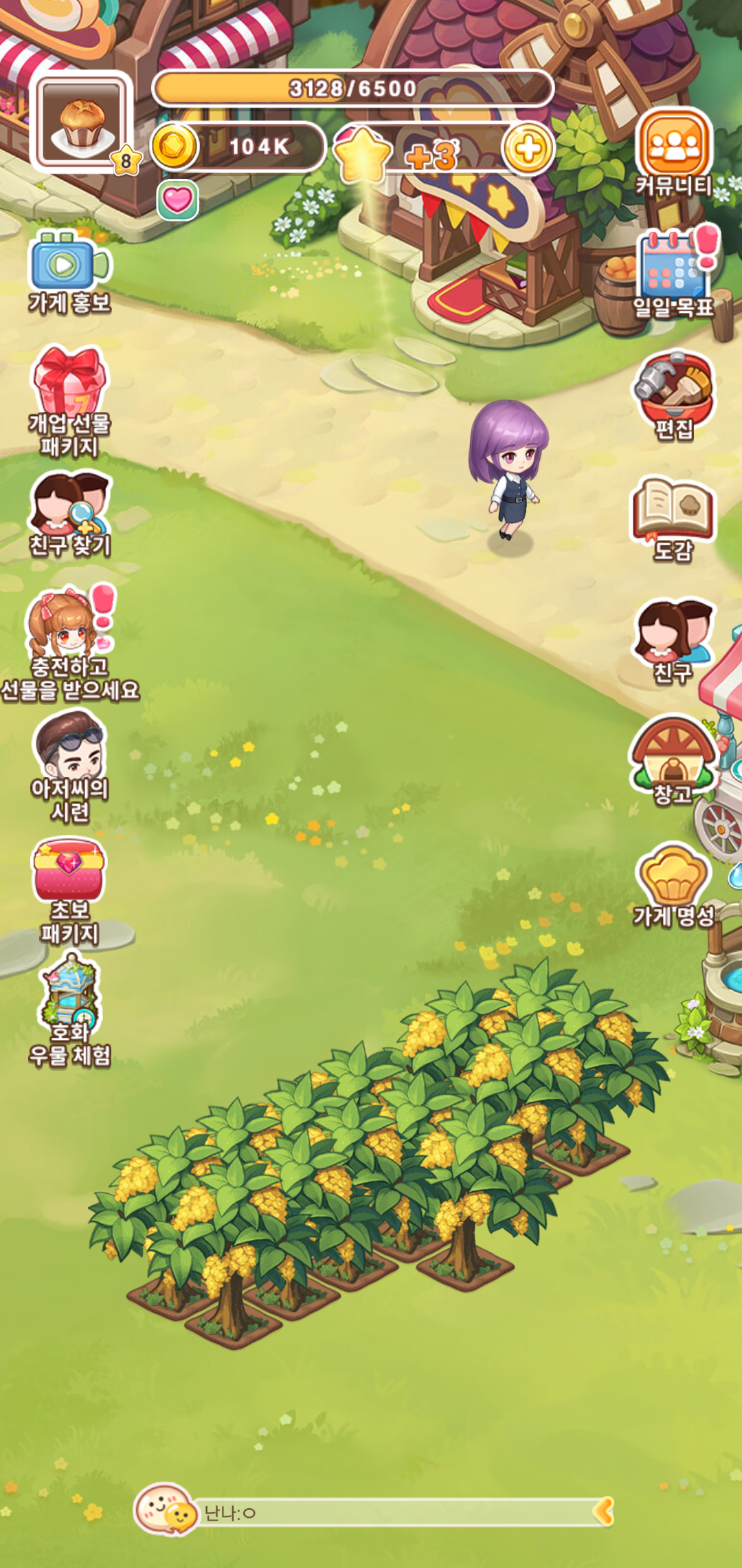 가게에서 판매하는 과일주스를 비롯한 쿠키등의 재료가 되는 농작물은 농장에서 키우고 수확까지 진행하게 되는데요, 원하는 농작물을 선택하고, 물을 주고 수확하는 과정이 바로 진행된다는 점에 있어 오랜 시간 기다리지 않아도 되는 점이 특징입니다.