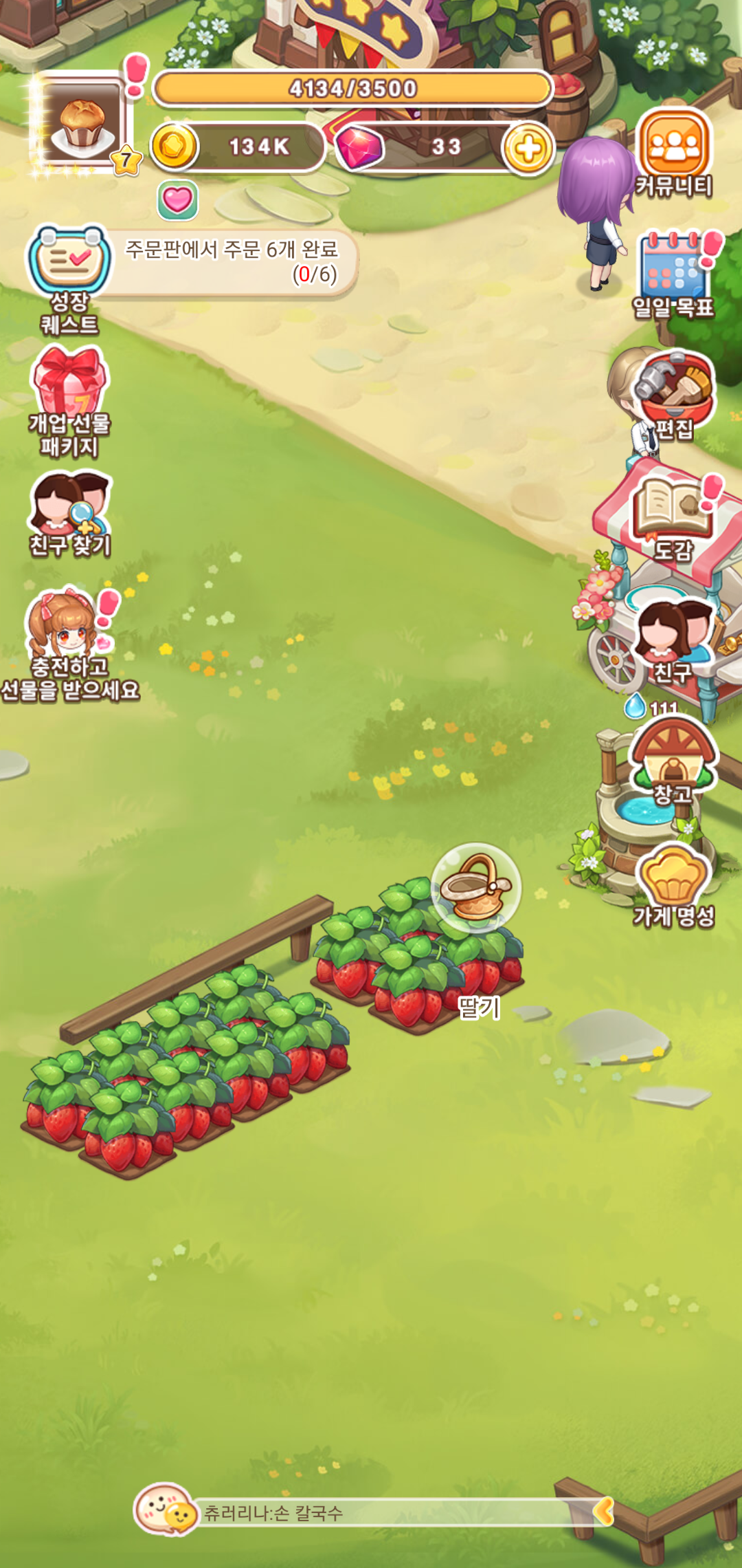 육성게임 두근두근디저트카페는 나만의 디저트 가게를 확장하고 성공하는 목표를 가지고 경영을 진행하게 됩니다. 경영형 시뮬레이션을 바탕으로 하는 만큼 성공을 위한 다양한 단계를 거치면서 필요한 재화를 획득하고 지속적인 성장을 하게 되는데요, 일일 목표를 바탕으로 주어지는 퀘스트를 클리어하면서 진행하다 보면 어느새 점점 커지는 카페의 모습을 확인할 수 있습니다.
