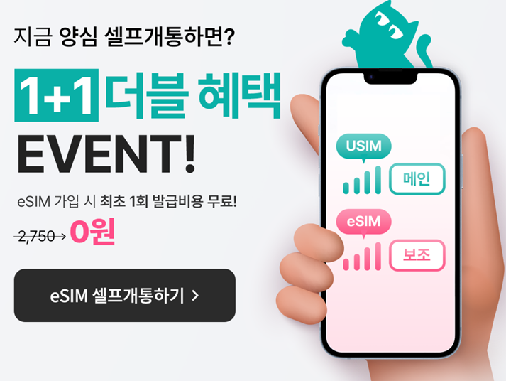 eSIM(이심) 서비스는 하나의 폰에 두 개의 번호를 사용할 수 있어 업무용이나 개인용 번호를 분리함 해 워라밸을 보호하고, 주차번호라던가 택배, 배달용등의 개인정보를 보호할 수 있는 장점을 가지고 있습니다. 두개의 번호를 사용하는 데 있어 필요한 통신비의 경우에도 스마트한 요금제 조합을 통해 기존에 받던 혜택은 그대로 가지고 가면서 새로운 통신사 혜택까지 받을 수 있어 유용합니다.